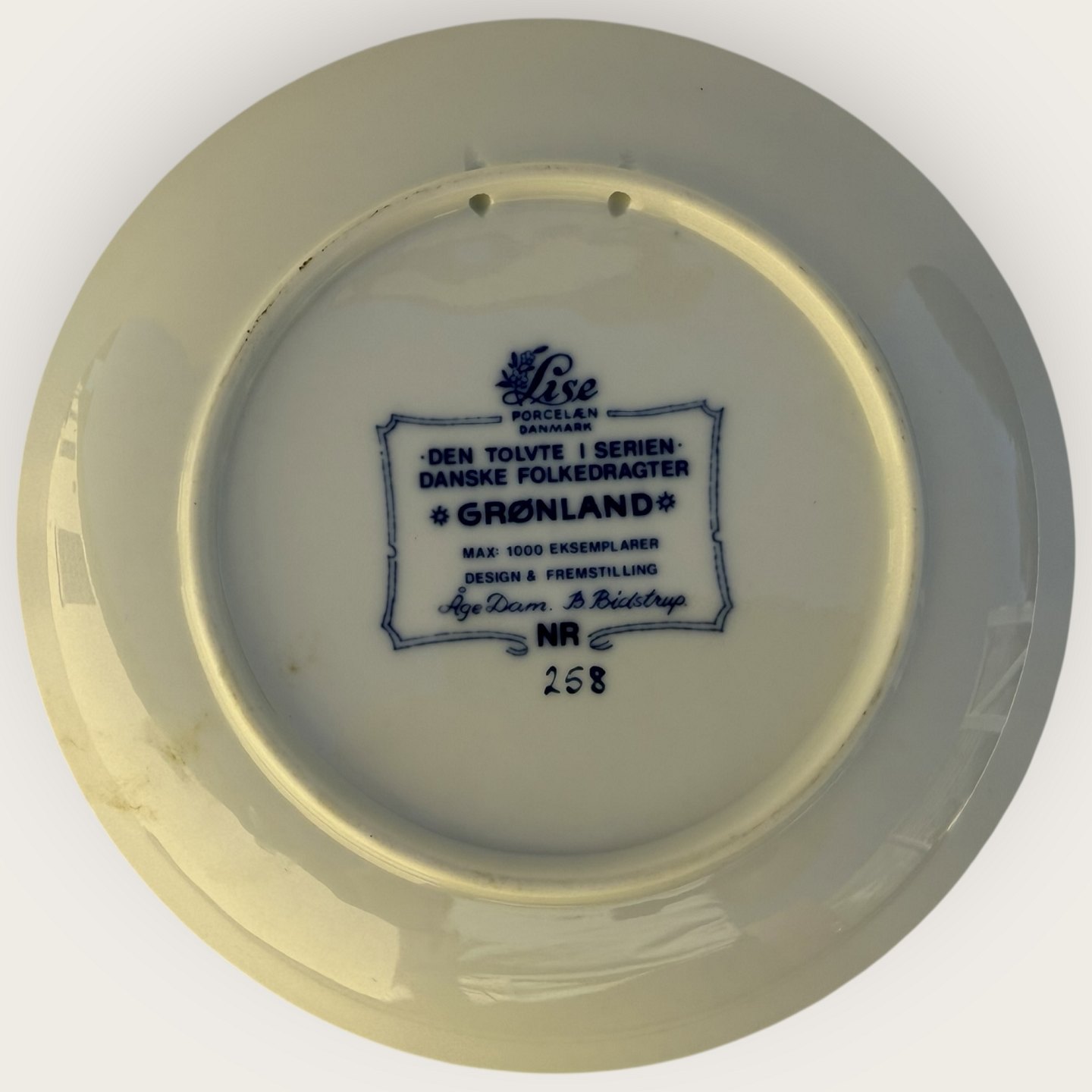 Lise Porcelæn, Serien Danske folkedragter, Grønland / Umanak, diameter 19,5cm, Åge Dam og B. Bidstrup