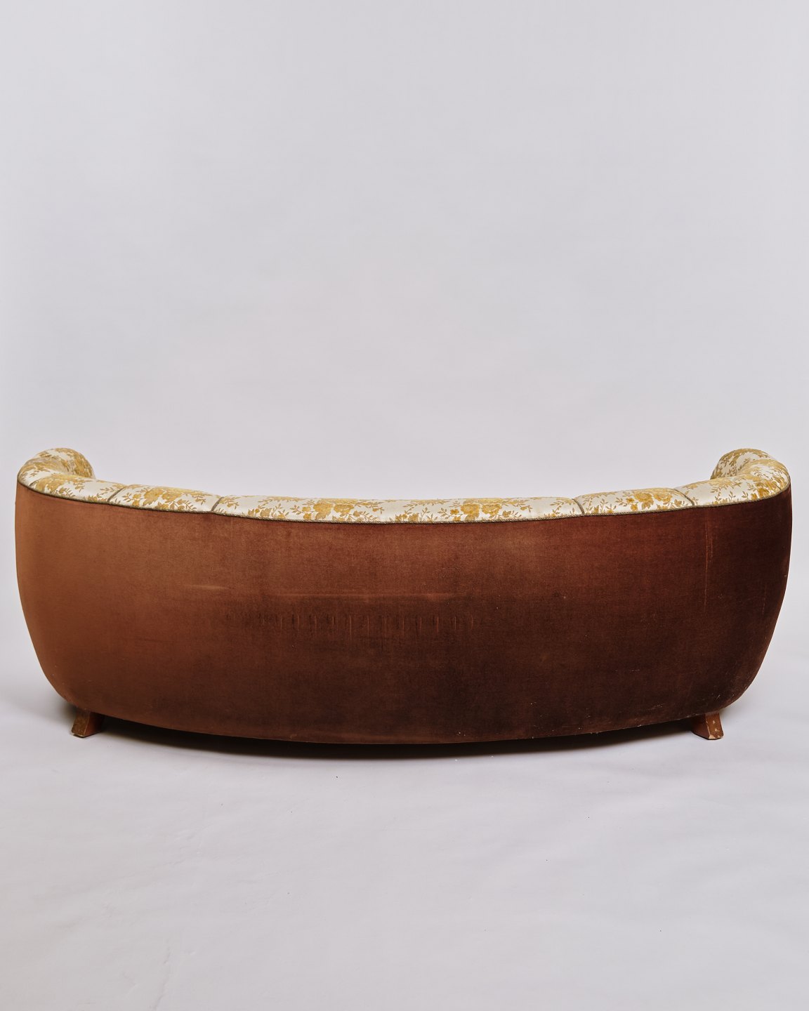 Banan Sofa - Blomstret Betræk - Ben Af Eg - Dansk Snedkermester - 1930-40erne