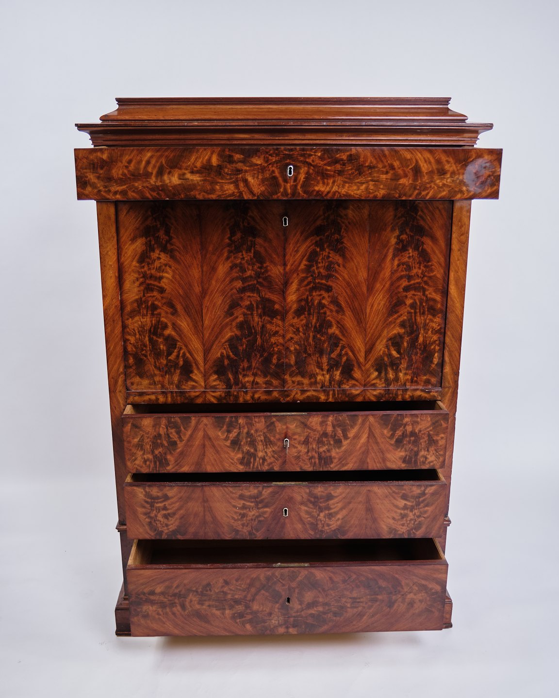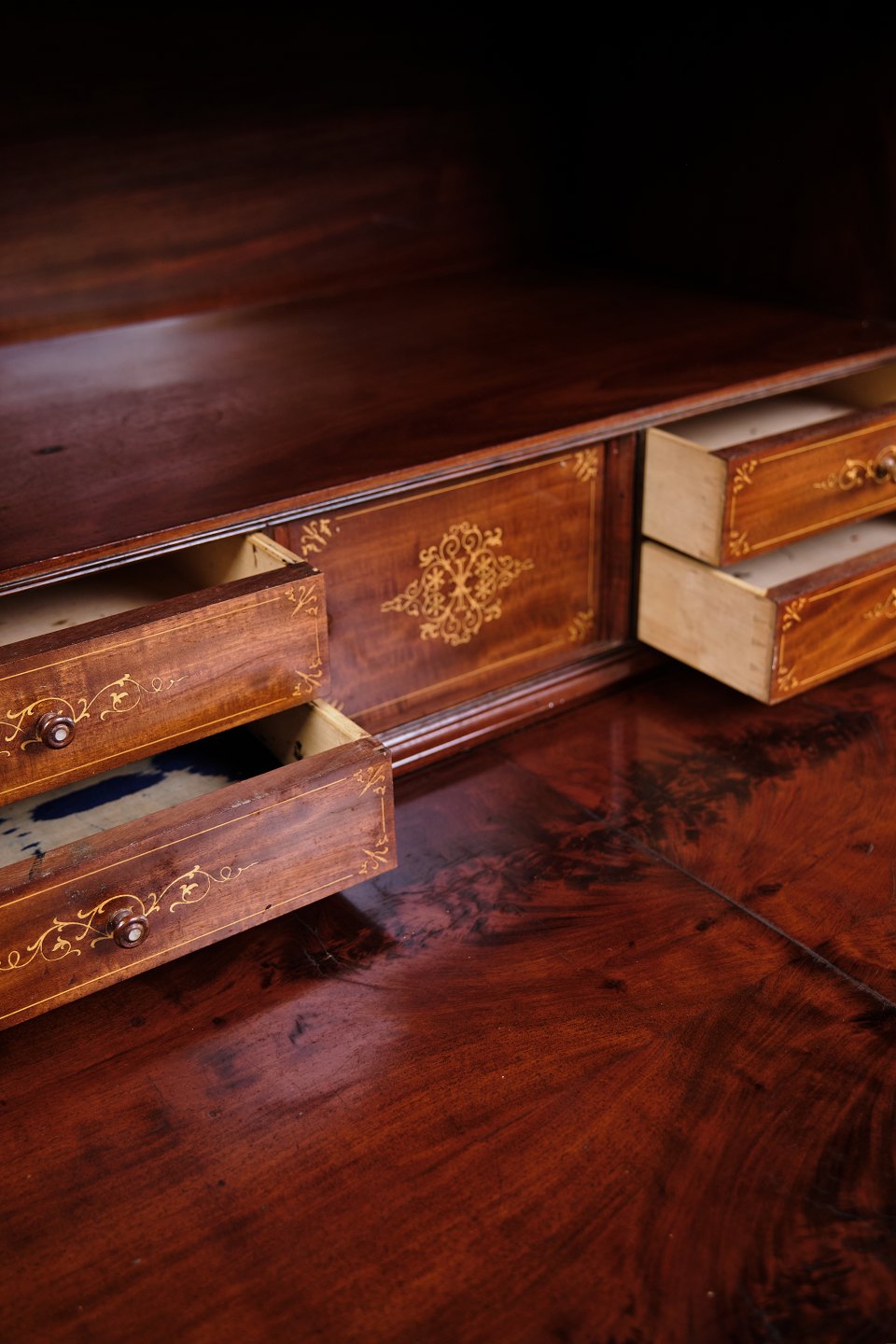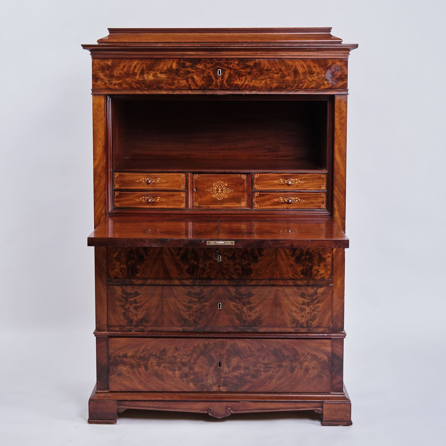 Sekretær – Mahogni – Intarsia & Flamme Struktur – 4 Skuffer – 1840’erne