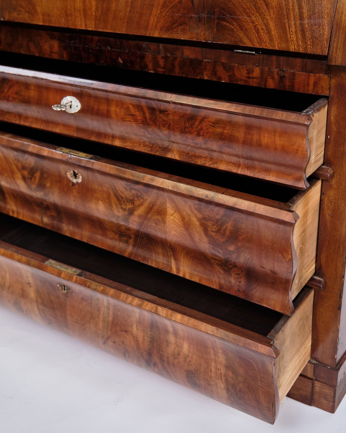 Dansk chatol fra 1820’erne. Håndpoleret mahogni med 3 skuffer. H: 118 cm, B: 107 cm, D: 50 cm. Klassisk dansk snedkerhåndværk.