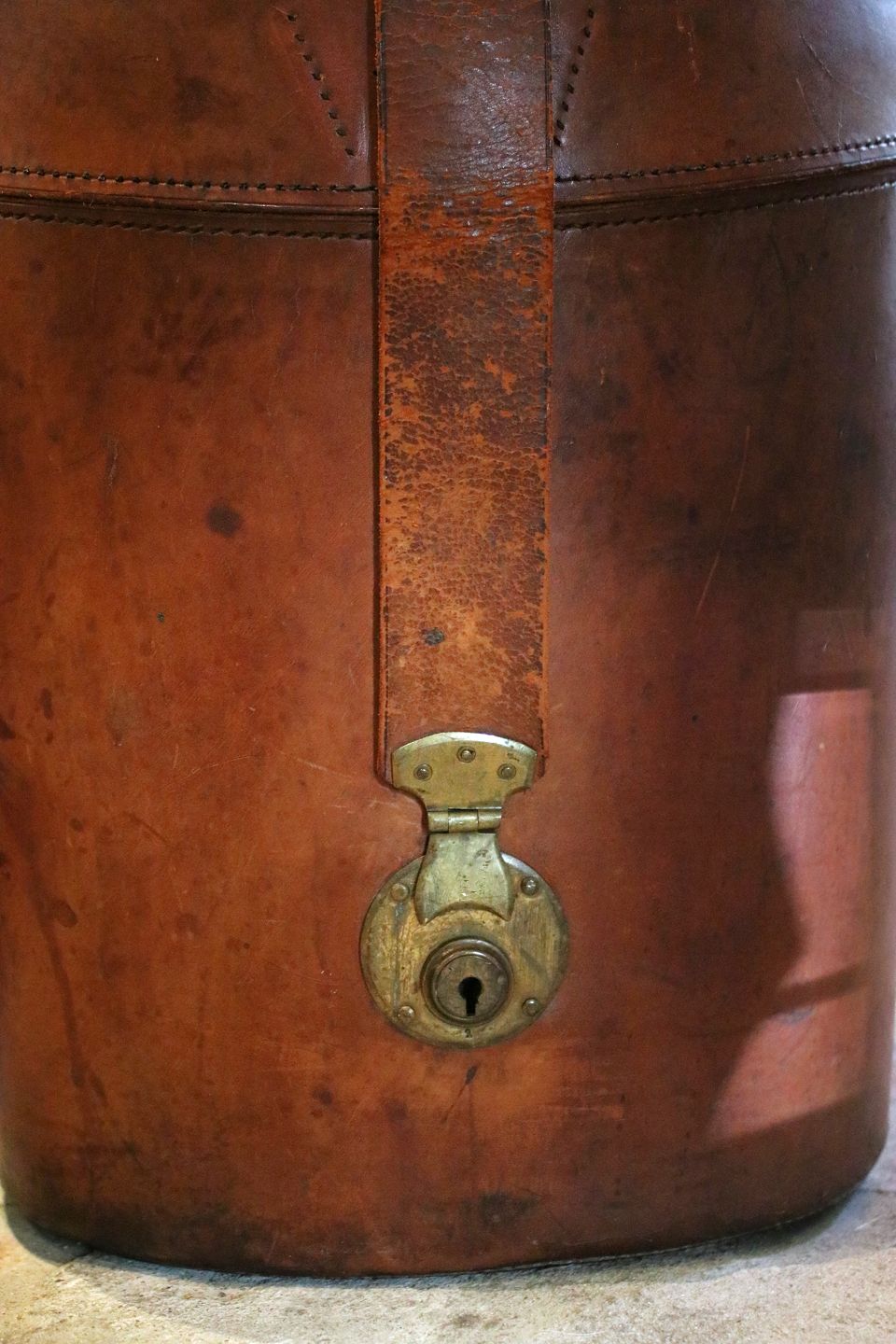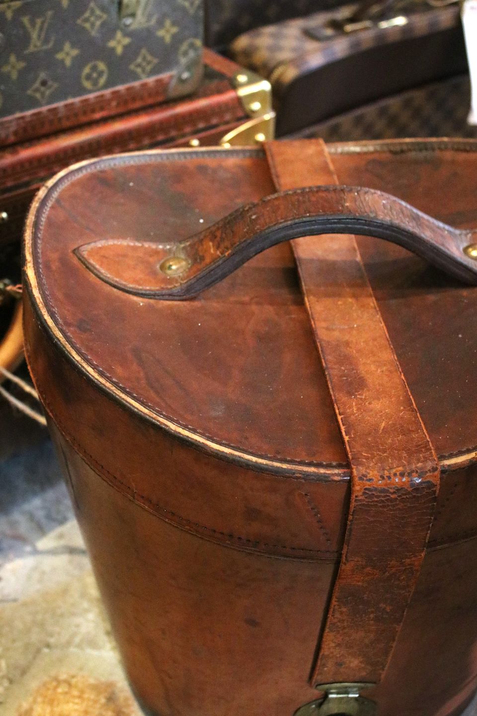 Dekorativ , gammel læder boks (gammel hatteæske) med en rigtig fin patina. Super fin til opbevaring...