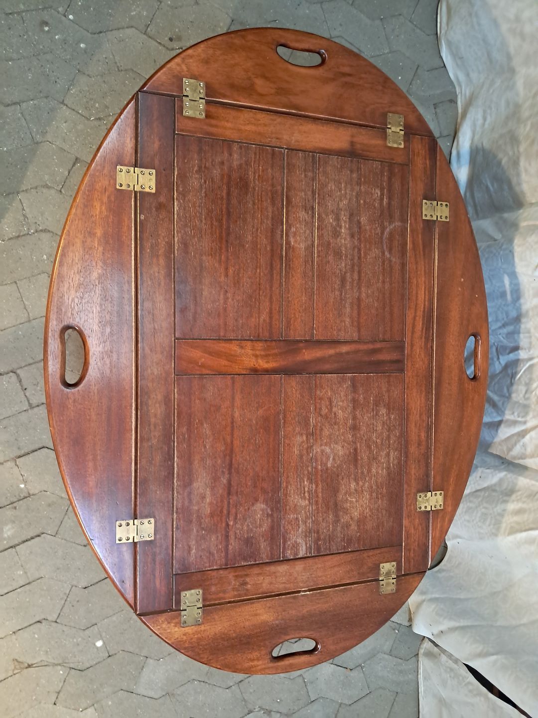 Butlers tray i fineret og massivt mahogni, fra 1980erne.