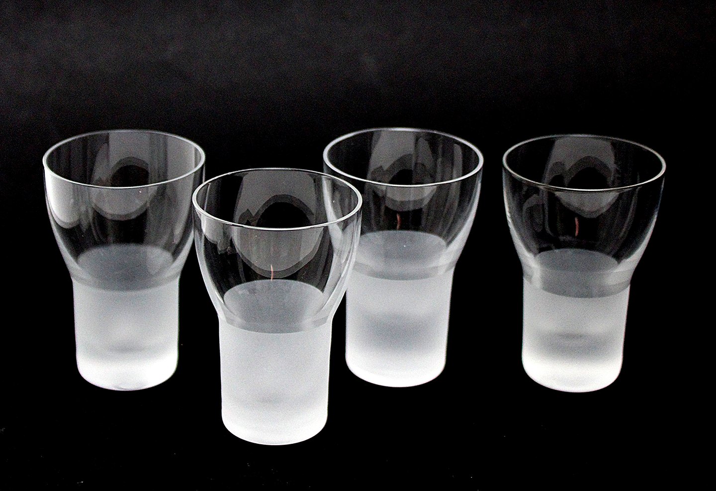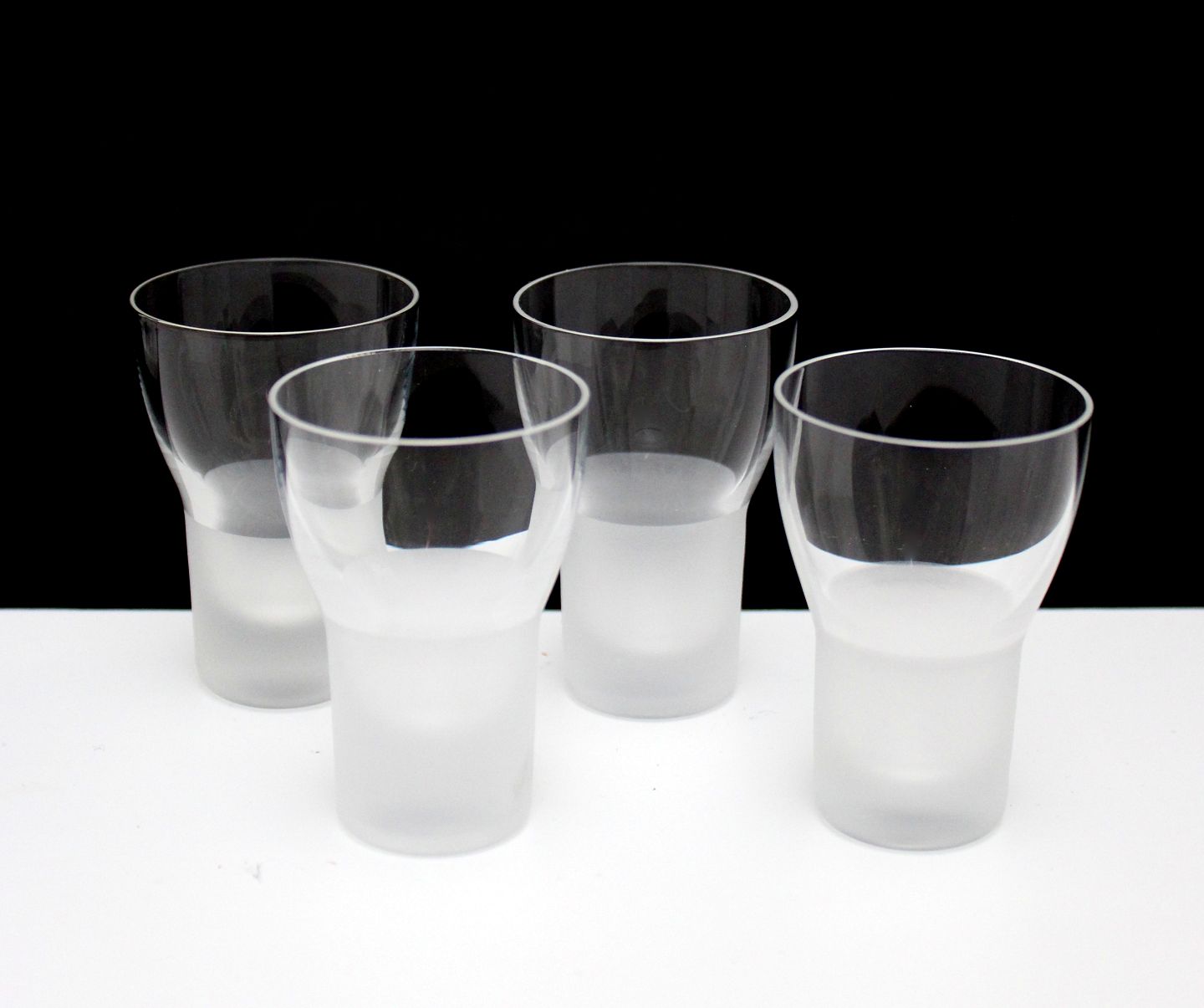Iittala, Marius, Shotglas. Glaskollektionen er designet af Markku Salo i 1985 og omfatter også en karaffel, dessertglas, vin- og ølglas. Marius-serien var i produktion indtil år 2000. Glassene er mundblæst i transparent glas i toppen og sandblæst i bunden. Højde 6,5 cm. Øverste diameter 4,5 cm. Bunddiameter 3 cm. Fin stand. Pris for 4 stk. 350 kr.