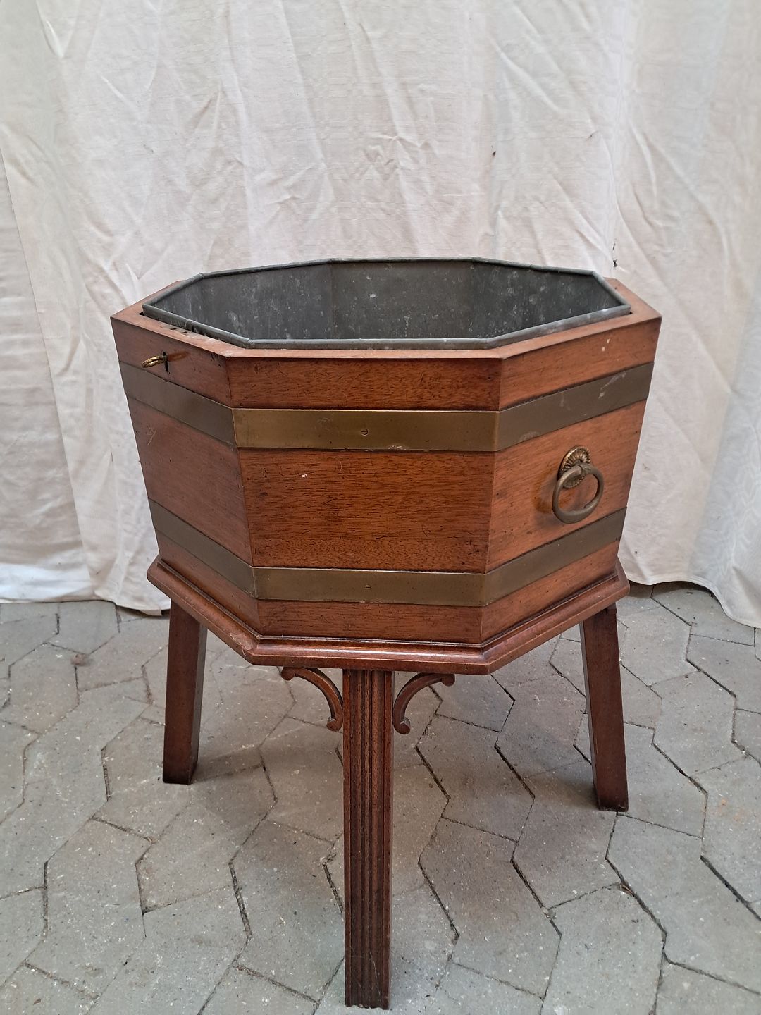 Plantekasse i mahogni med zinkspand, fra 1960erne.