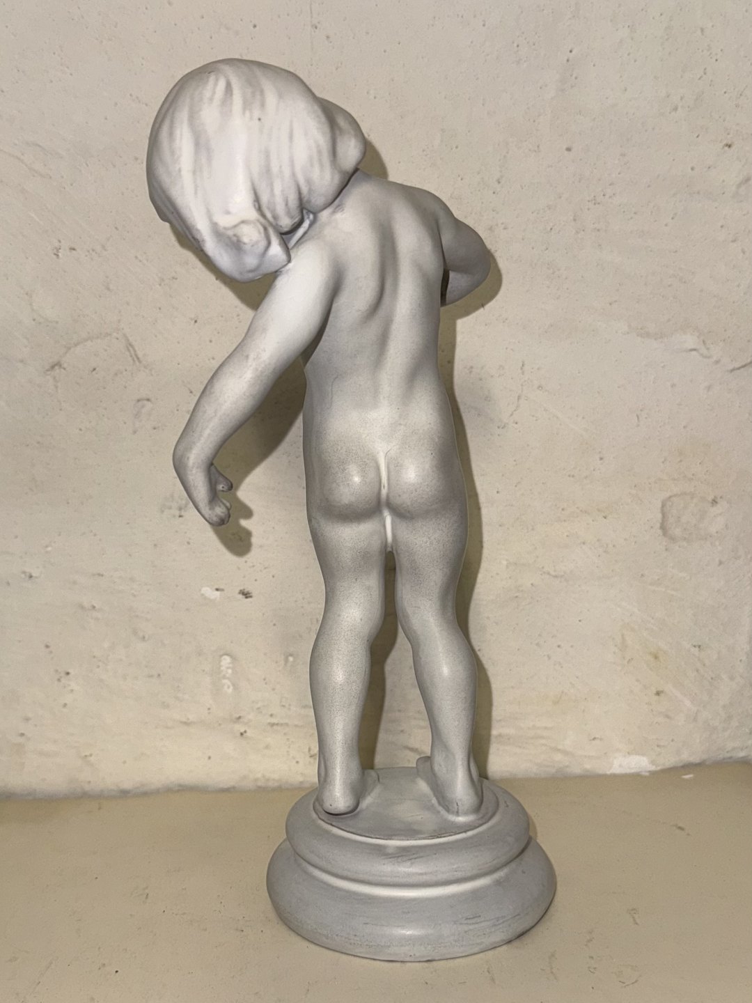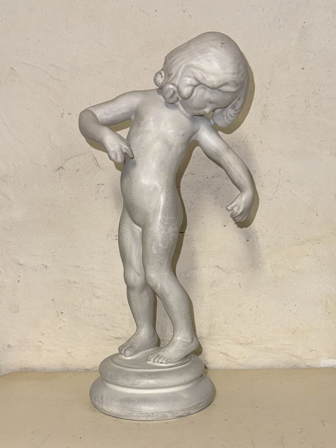 Venus Kalypogos: Figur i hvid glaseret keramik af stående pige på rund base. Udført af den danske billedhugger Kai Nielsen for Kähler fabrikken. Fremstår i perfekt stand. H. 22,5 cm. Fabriksmærket på bunden.