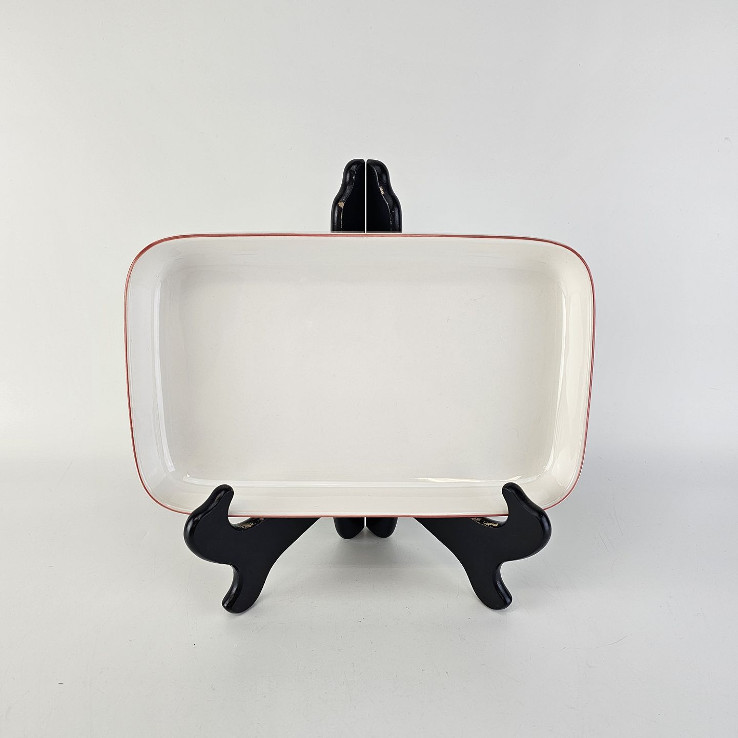 Aflangt fad i fajance fra stellet 4 All Seasons med rød kant