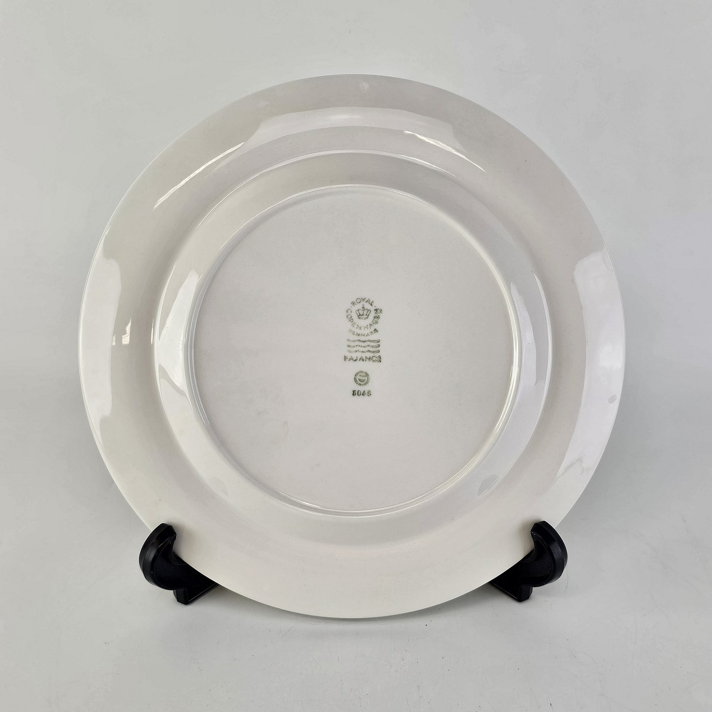 Stellet er fremstillet i glat hvid fajance med dekoration af en simpel stribe i forskellige farver