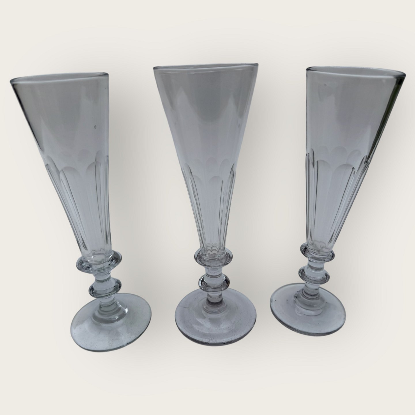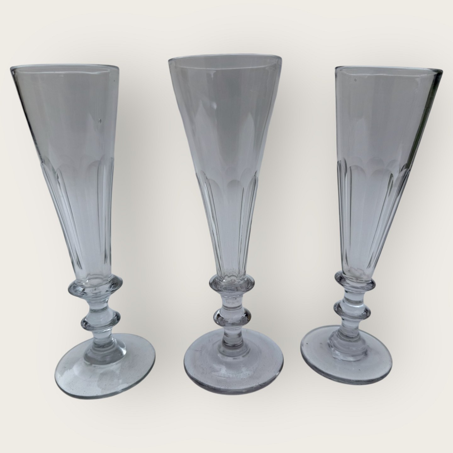 Diverse danske glasværk, Anglais med facetslebet kumme, Champagnefløjter, 17,5cm høj *Perfekt stand* ( Glasset til venstre på de sidste foto er lidt uklart i glasset og kan købes for 225,-kr)