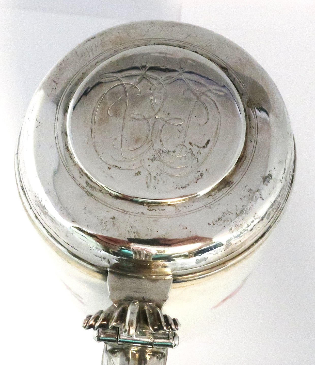 Royal Copenhagen. Lågkrus dekoreret med blomster med sølvlåg. Låg ikke stemplet. Højde 17 cm. Diameter 12 cm