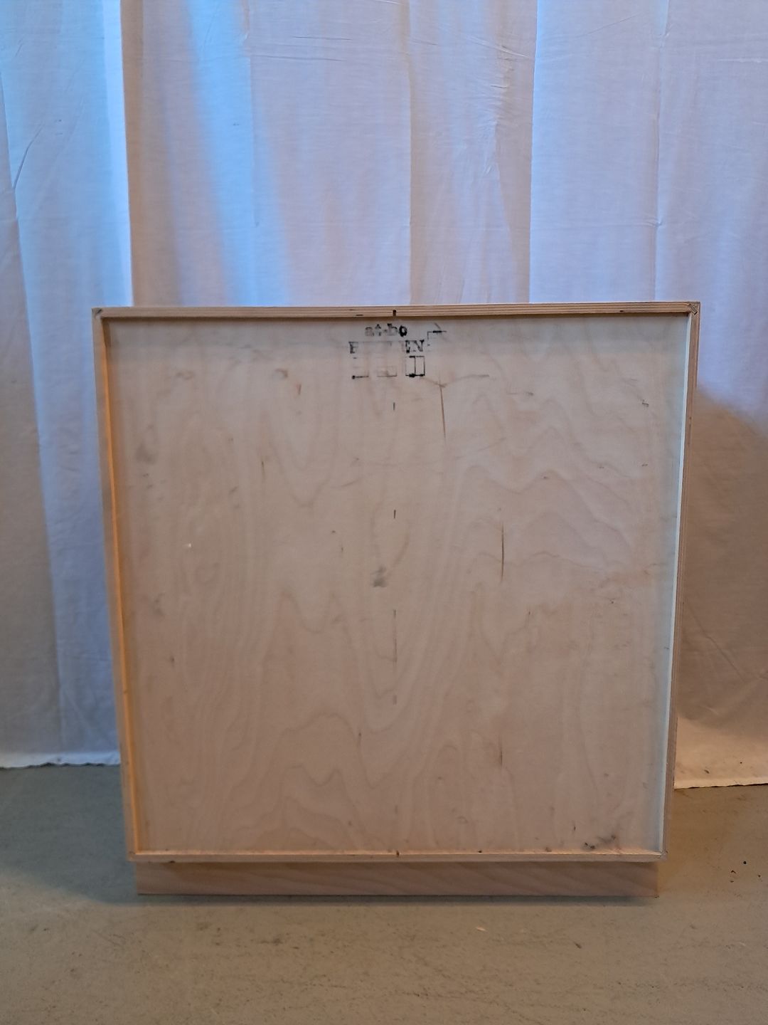 At-bo reolkasse i krydsfiner med malede låger, fra 2000erne.
