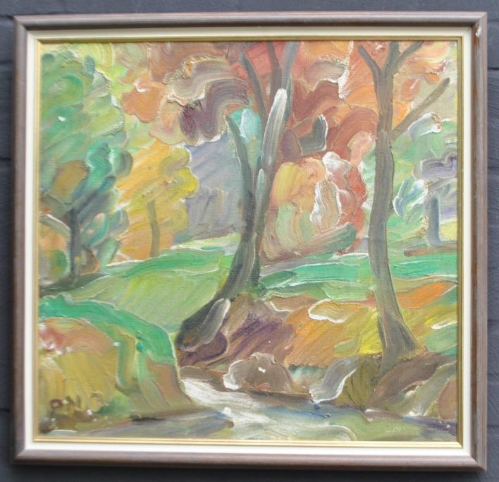 Nicolaisen, Peter (1894 - 1989) Danmark: Et åløb i en park. Olie på lærred. Signeret. 51 x 57 cm.