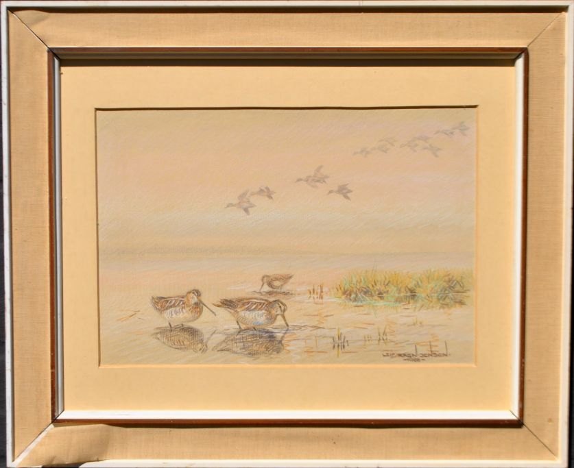 Ragn-Jensen, Leif (1911 - 1993) Danmark: Fugle ved havet. Pastel på papir. Signeret 1988. 32 x 47 cm.