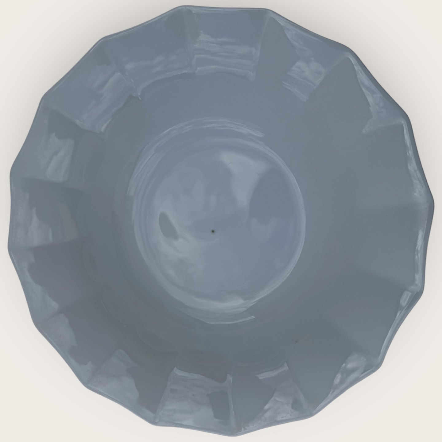 Royal Copenhagen, Hvidt kantet uden dekoration, Rund skål på fod #577, 23,5cm i diameter, højde 9cm, 3. sortering, En plet i bunden og lille fejl på foden(se foto).