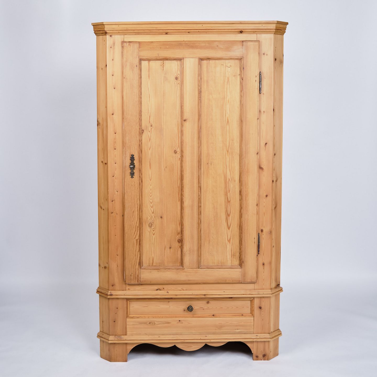 Antikt hjørne fra 1920’erne udført i massivt fyrtræ med originale messingbeslag.