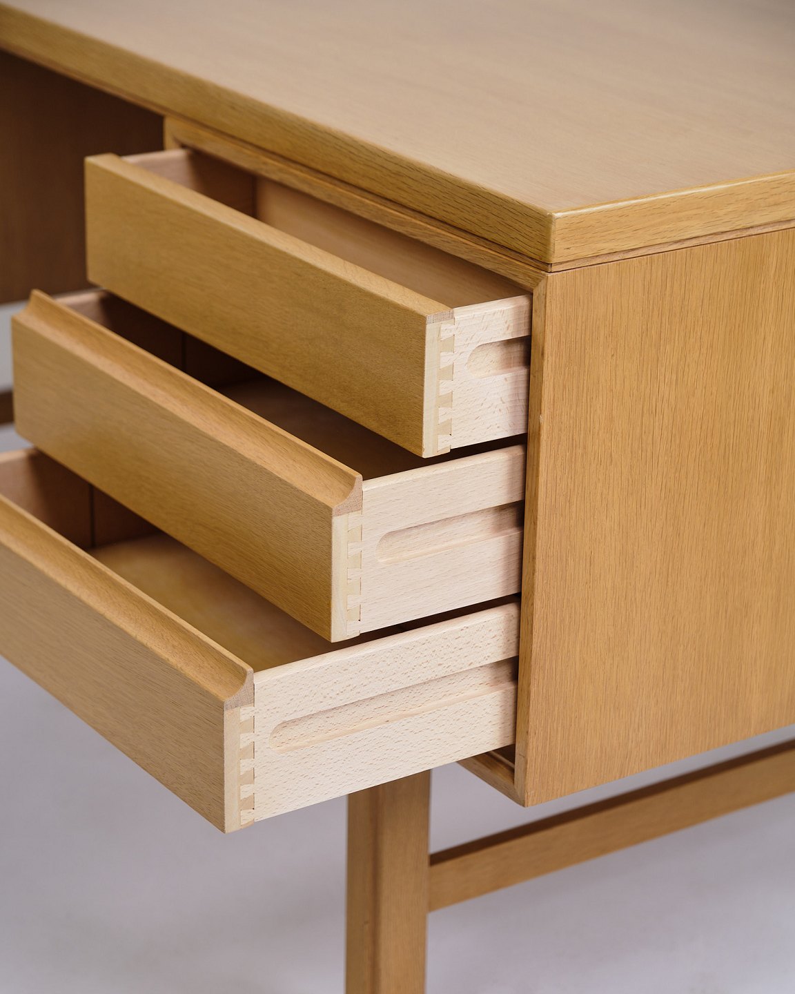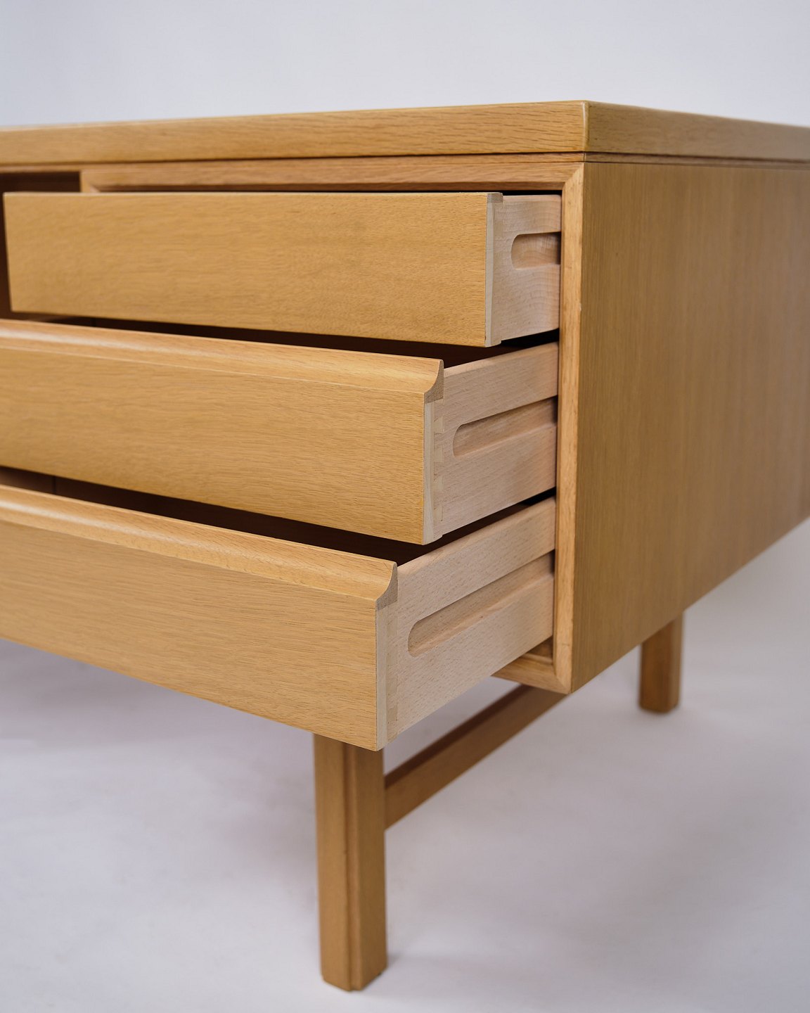 Fritstående Skrivebord - Seks Skuffer - Egetræ - Omann Junior - Dansk Design - 1960erne