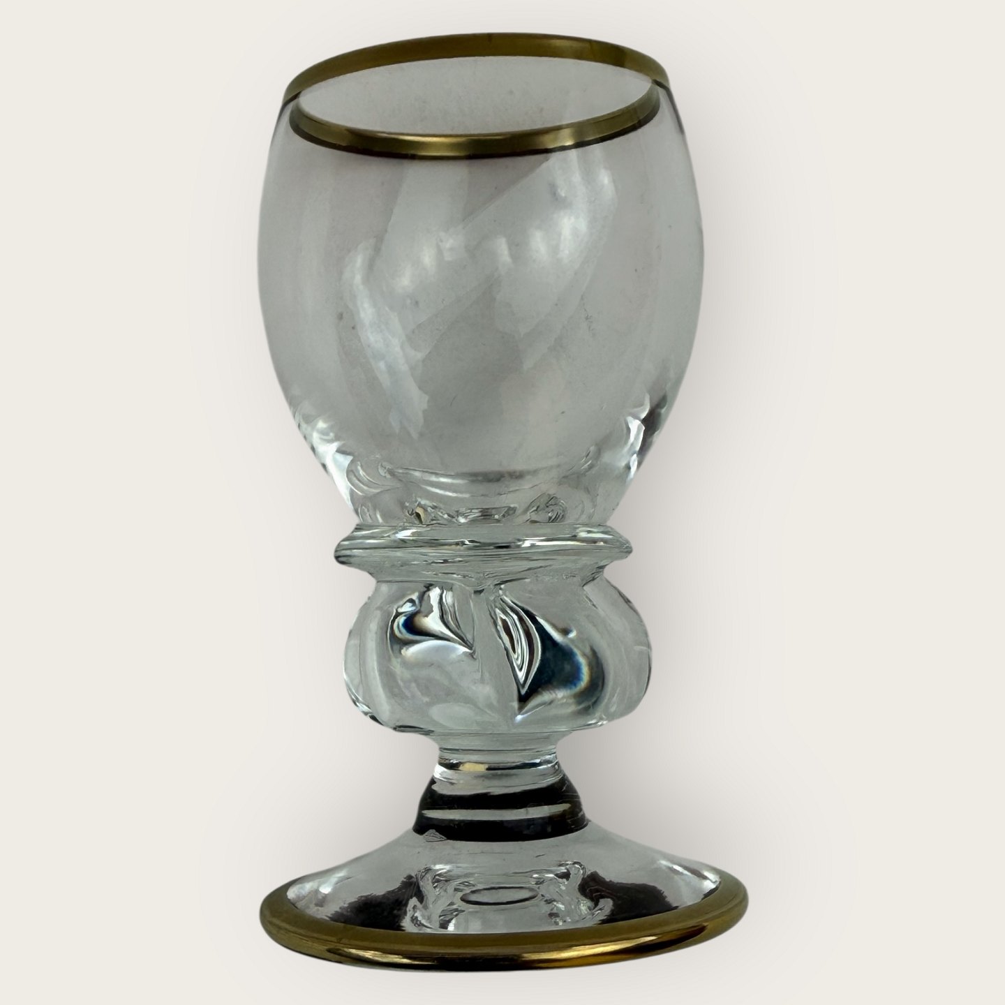Holmegaard, Gisselfeld, lille Snapseglas med guldkant, 7,3cm høj, 3,4cm i diameter, Design Jacob E. Bang *Pæn stand*
