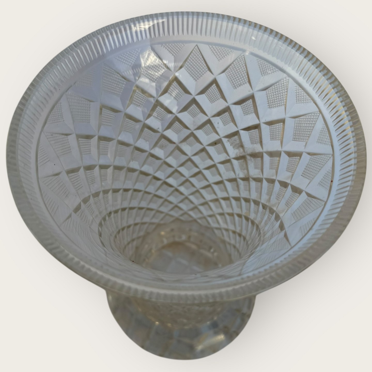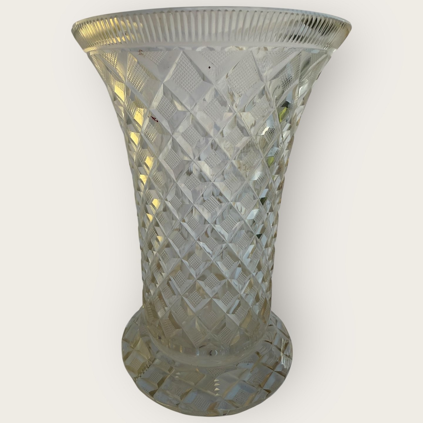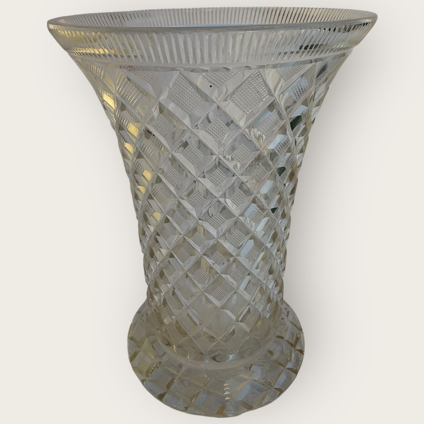 Stor krystalvase med mange slibninger i rigtig flot stand, Højde 21,5cm, diameter 14,5cm