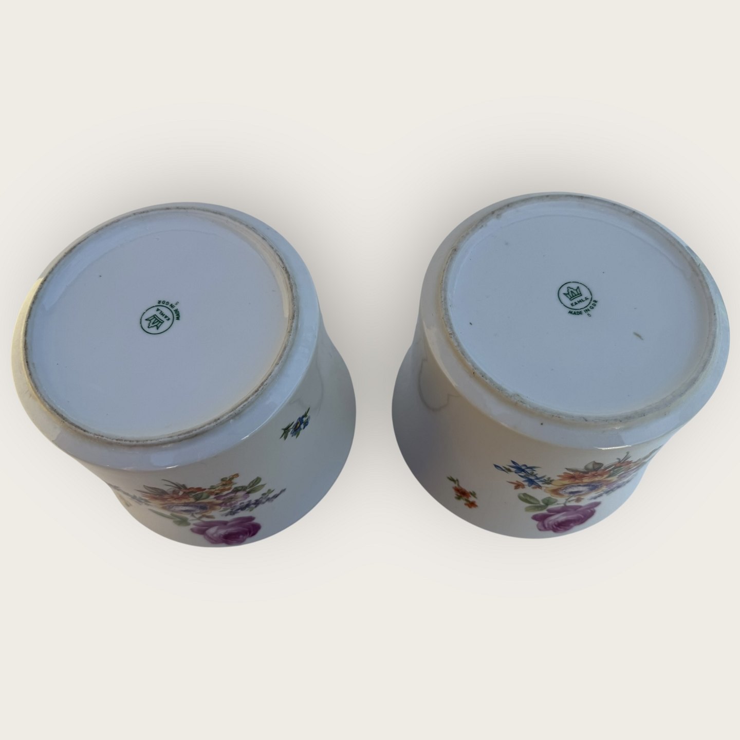 Kahla, GDR ( det tidligere Østtyskland), blomstret, Urtepotteskjuler 14cm høj, 17cm i diameter, *lidt kalk indvendigt (se foto) ellers pæn stand*