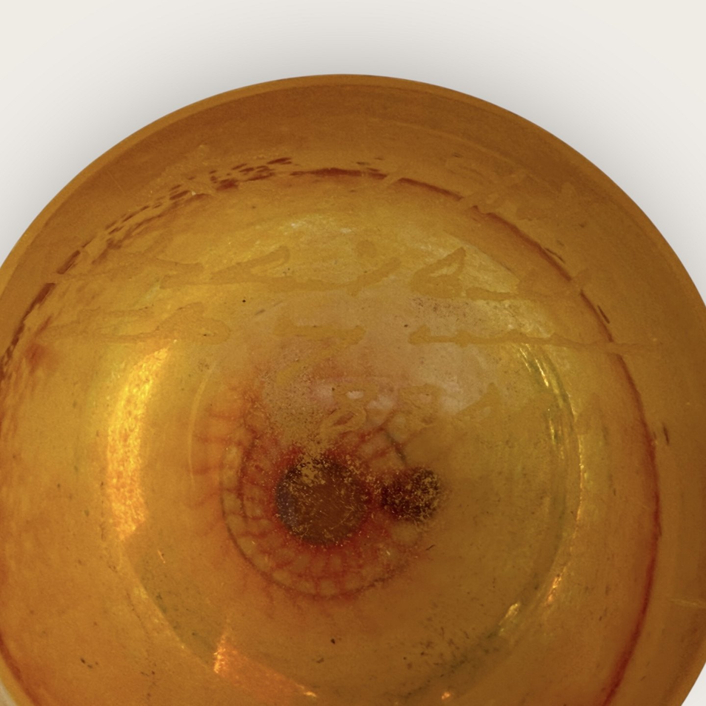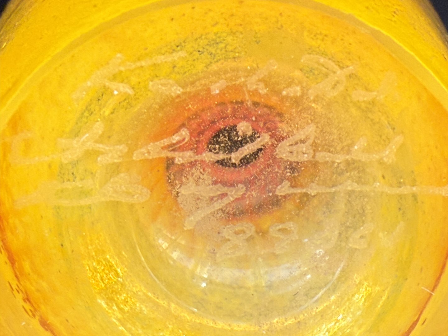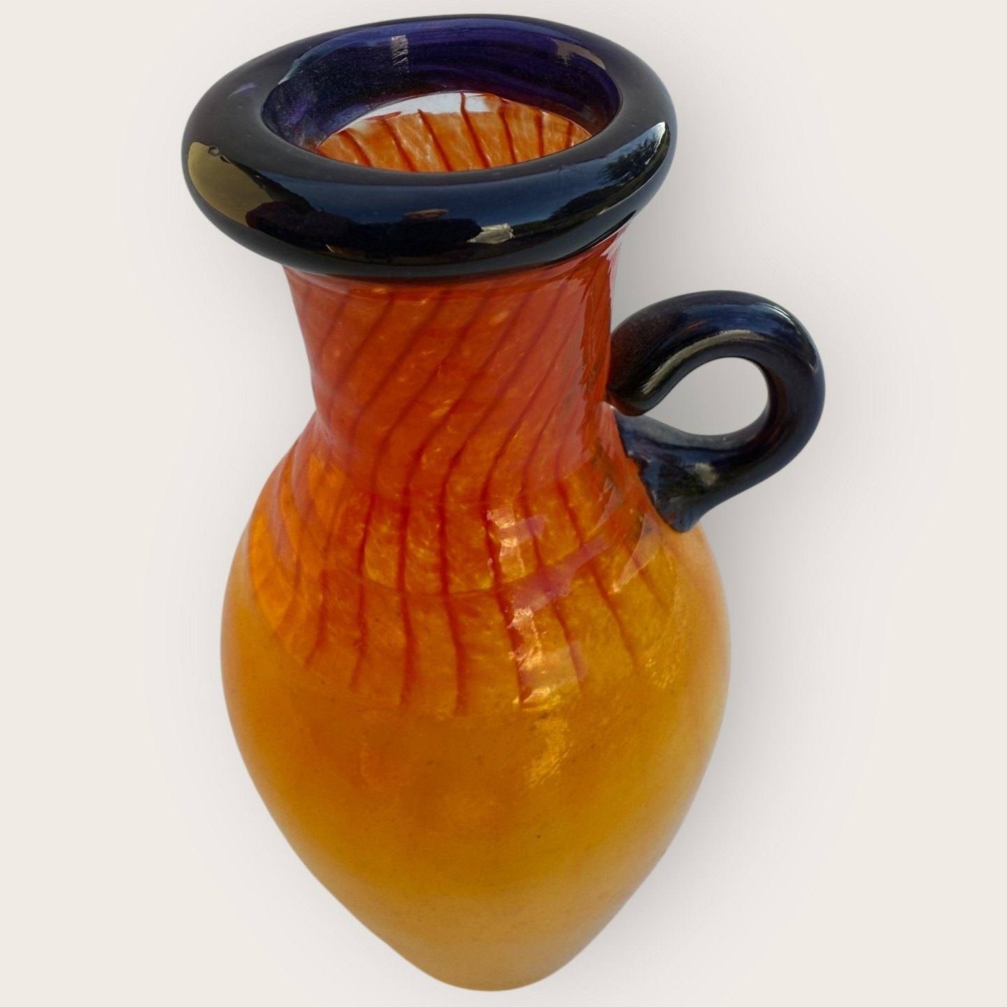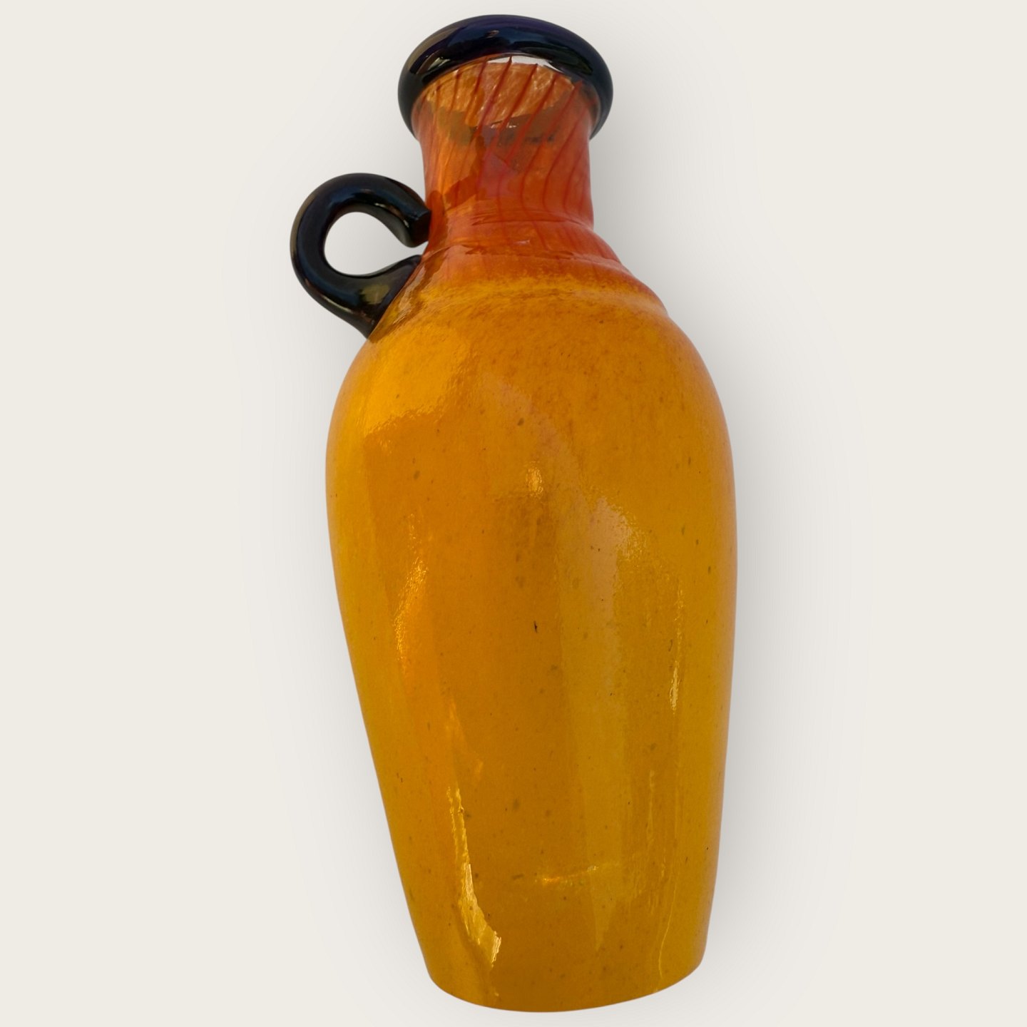 Kosta Boda, Sverige, Gul/Orange glasvase med blå hank og kant, #89061, højde 12 cm *fin stand*