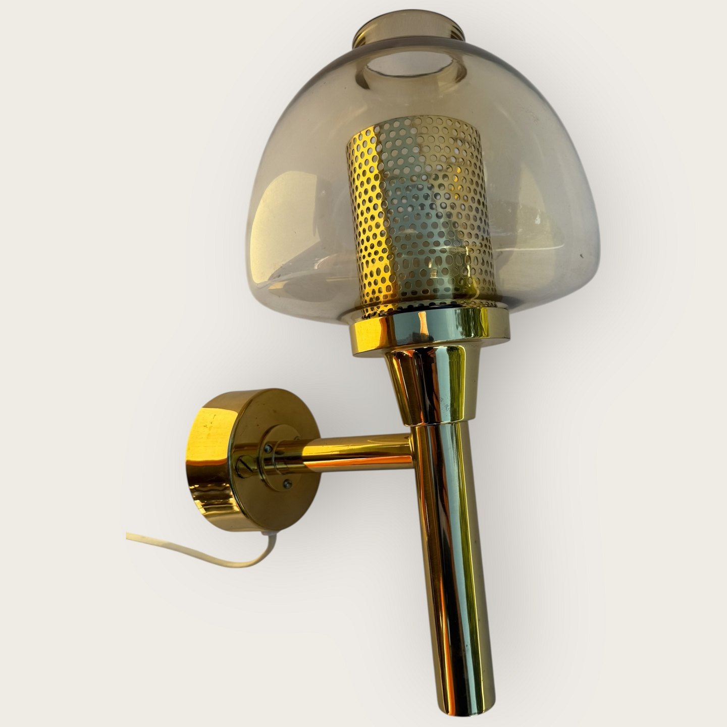 Hans Agne Jakobsson, # 314, væglampe, messing og glas, Højde ca 32cm, meget lille sprække/patinering på vægbeslaget (se foto) ellers rigtig flot stand.