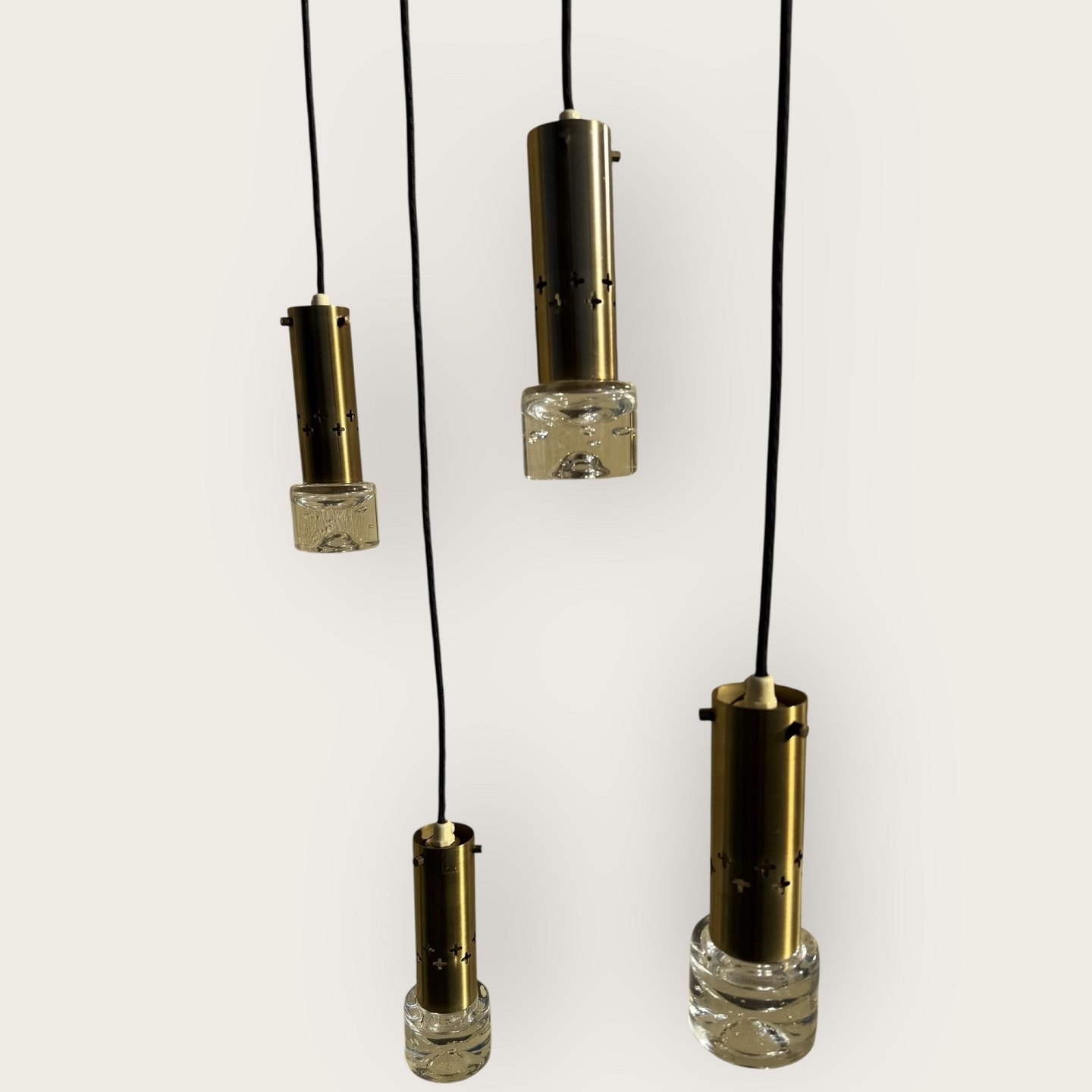 Frithængende lamper i messing og glas, Sverige i 1970'erne, Højde 17,5cm, diameter 6cm, fin stand