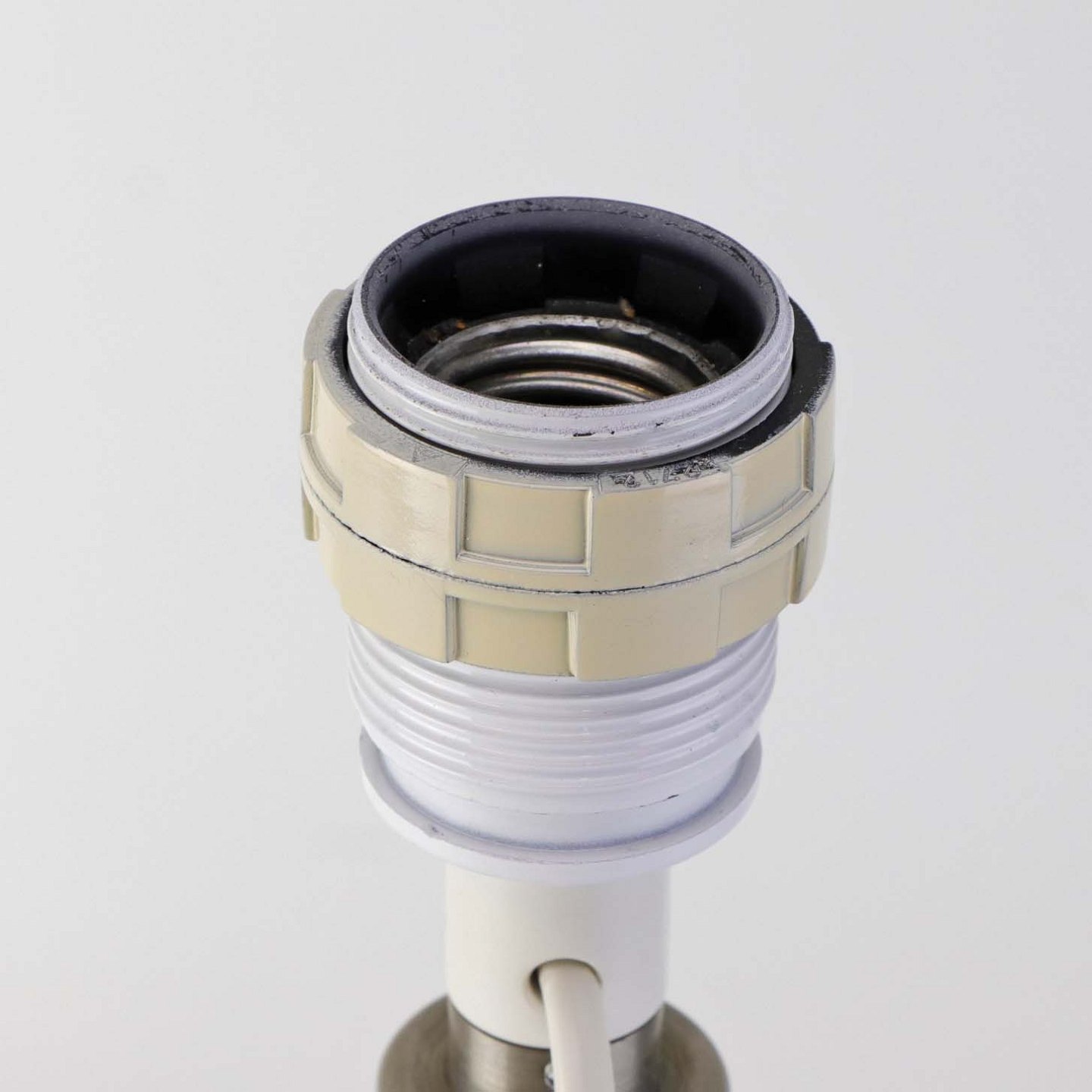 Fremstår med lettere ridser under bunden samt ved fatningen. Den har en mindre ujævnhed i glasset, som kan anes, når lampen vendes på hovedet.
