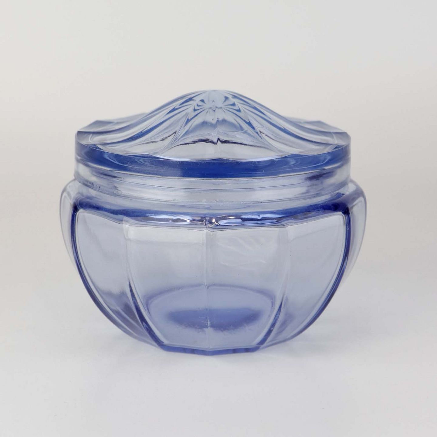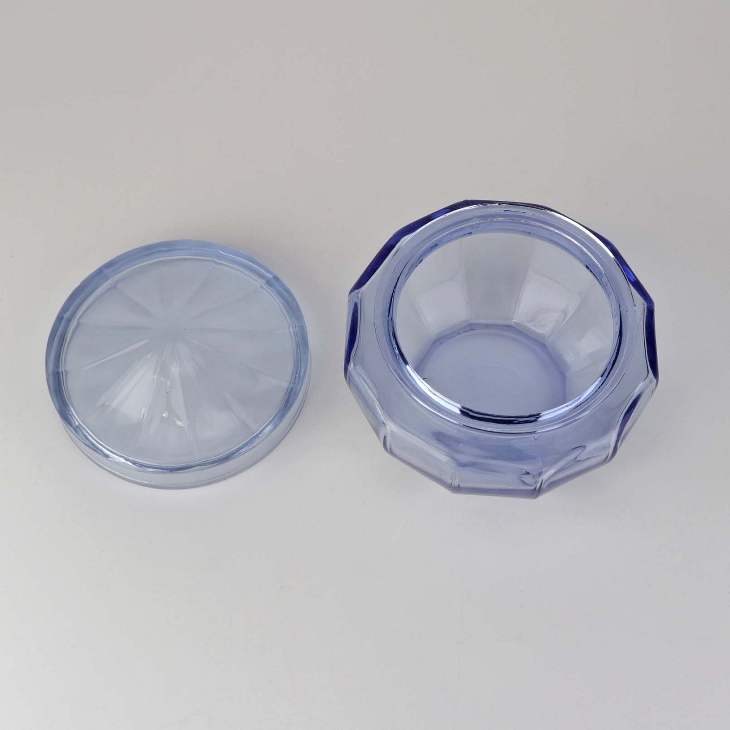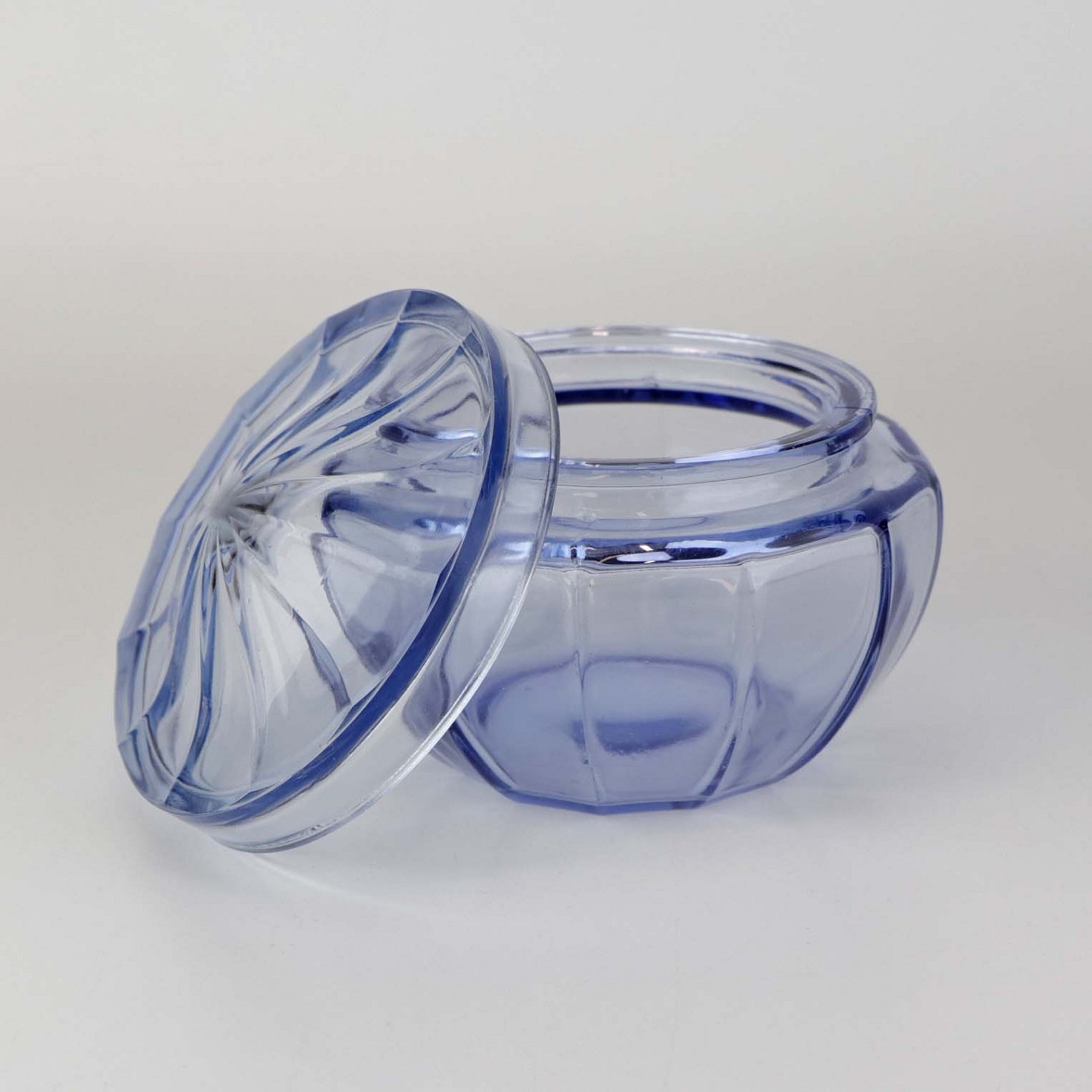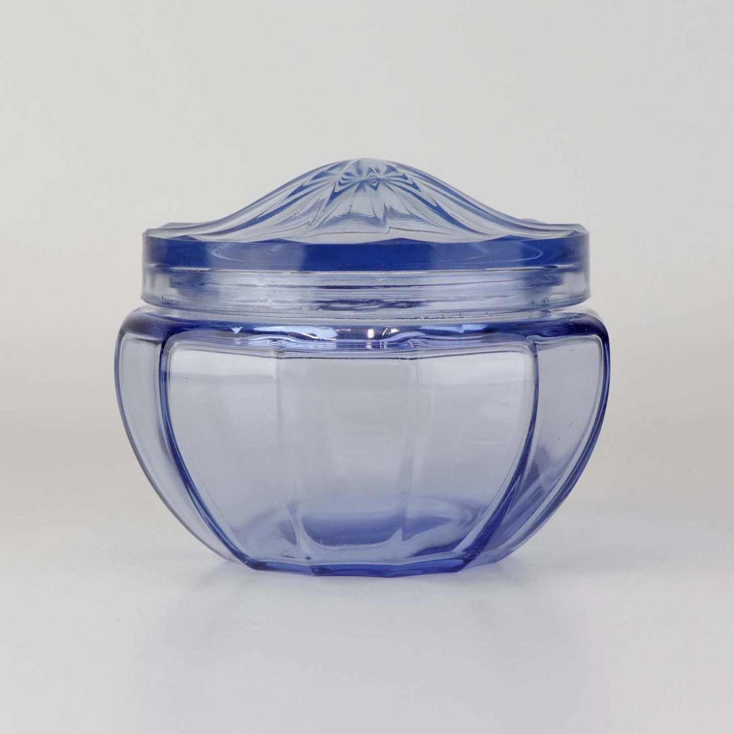 Honningkrukke med låg i blå glas