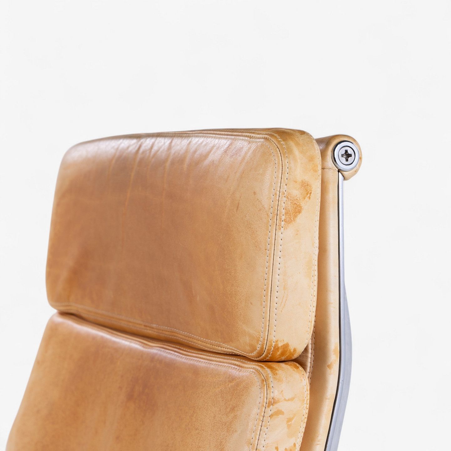 EA 219 - Højrygget kontorstol i patineret naturlæder på stel af stål. Mærket fra producent.