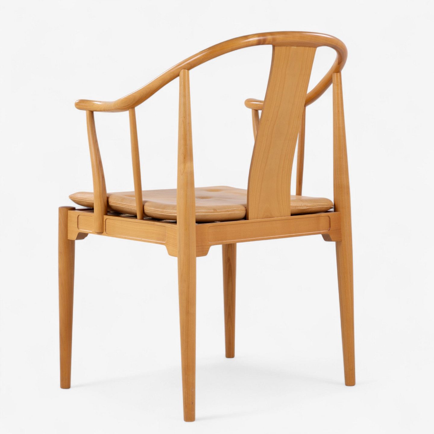 FH 4283 - Kinastol i kirsebær med hynde i patineret naturlæder. Mærket fra producent.
