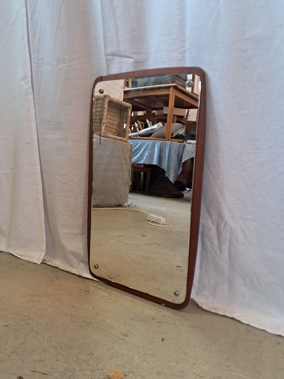 Spejl på ramme af teaktræ, fra 1960erne.