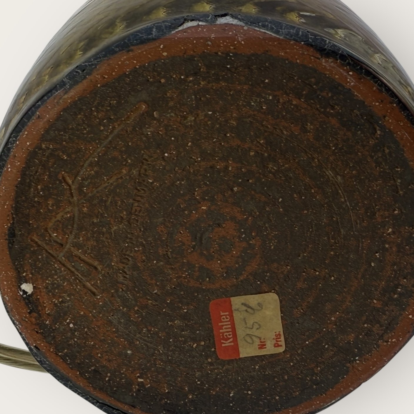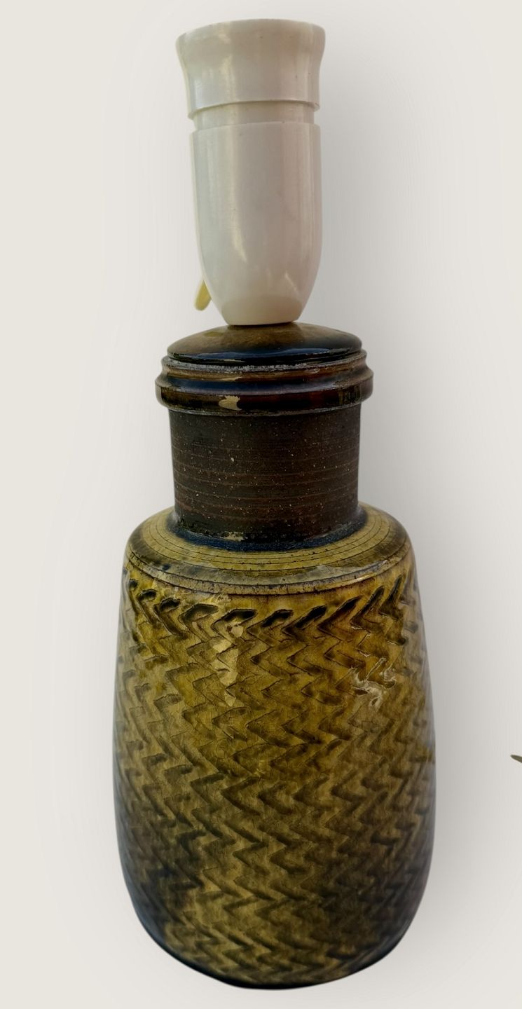 Kähler keramik, Glaseret bordlampe, #95, 28cm høj (incl. fatning) 16cm i diameter *Med et par små afslag ved fodkanten (se foto) ellers pæn stand*