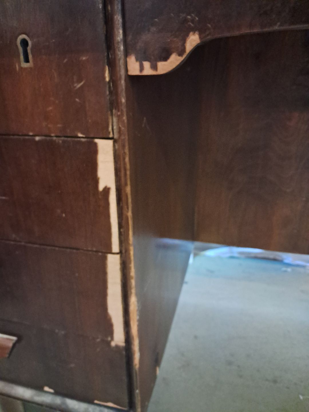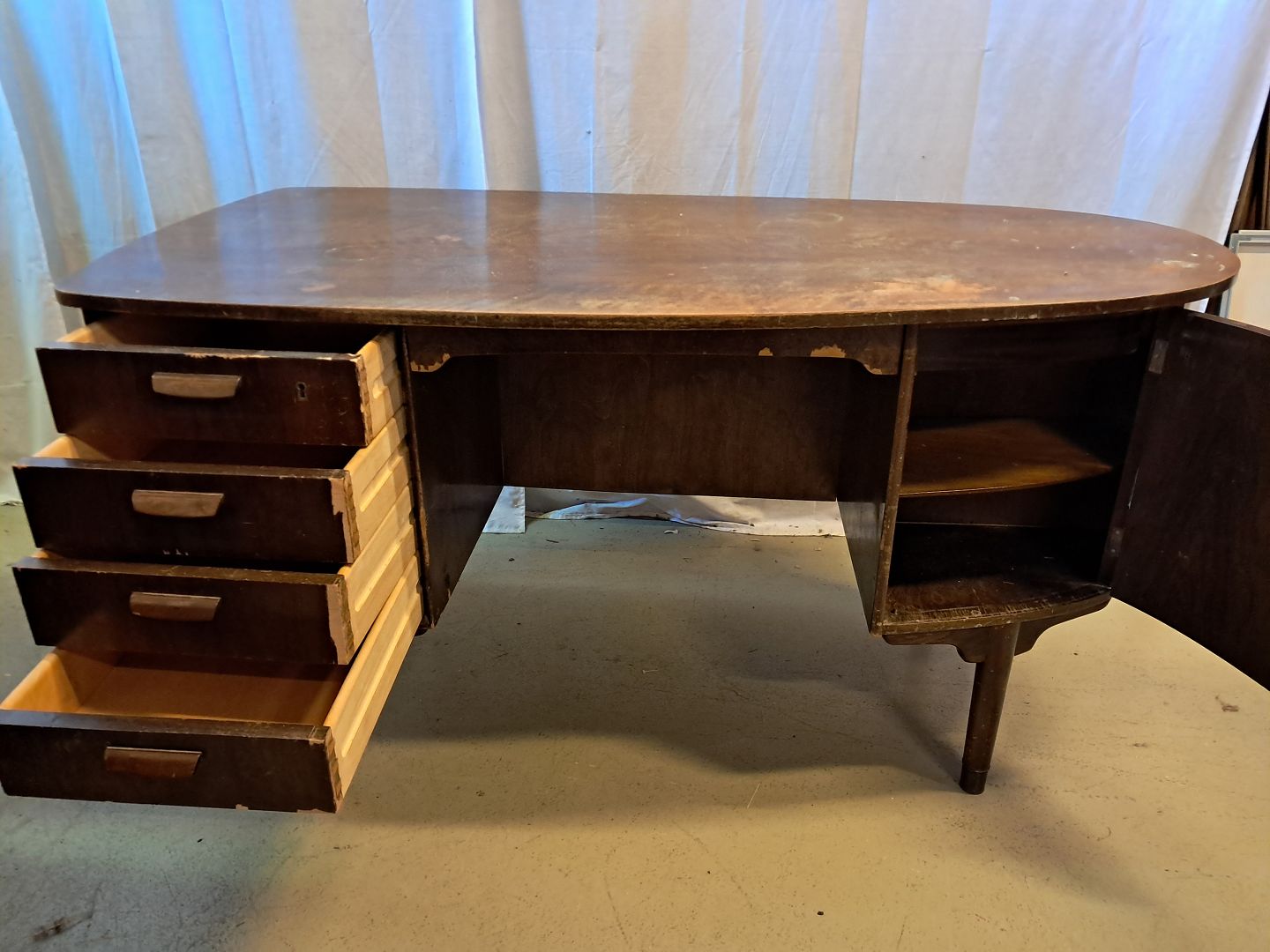Skrivebord i fineret nødetræ, fra 1960erne.