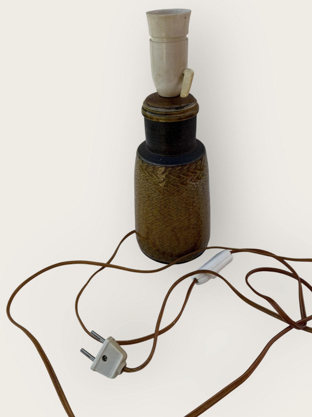 Kähler keramik, Glaseret bordlampe gul/grøn, 27,5cm høj (incl. fatning), Signeret HAK Nils *Pæn stand*