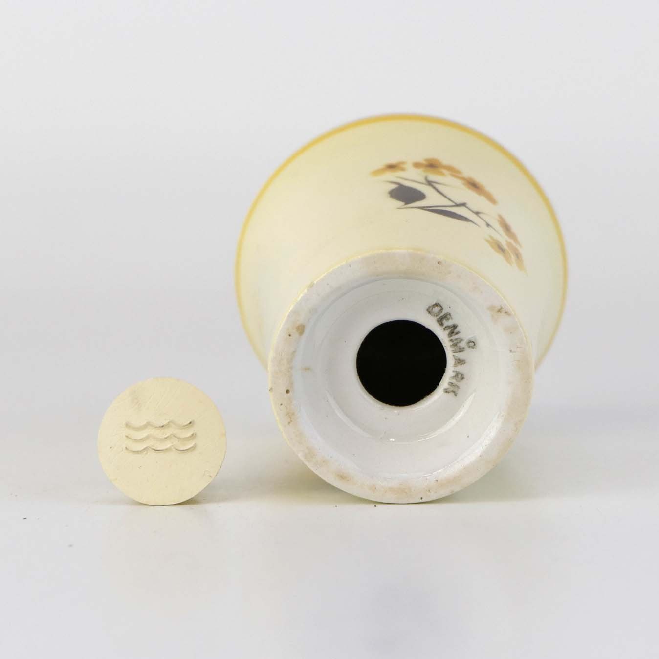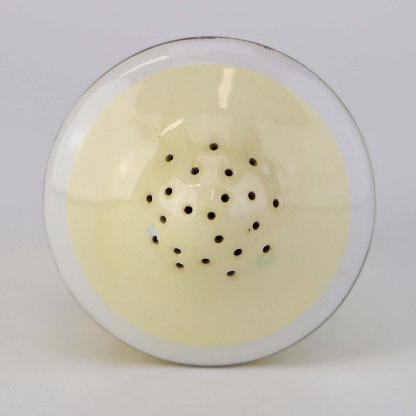 Fremstår med et mindre nøk i glasuren ved støhullerne samt mindre grønlig nuance under glasuren på et mindre område på toppen.