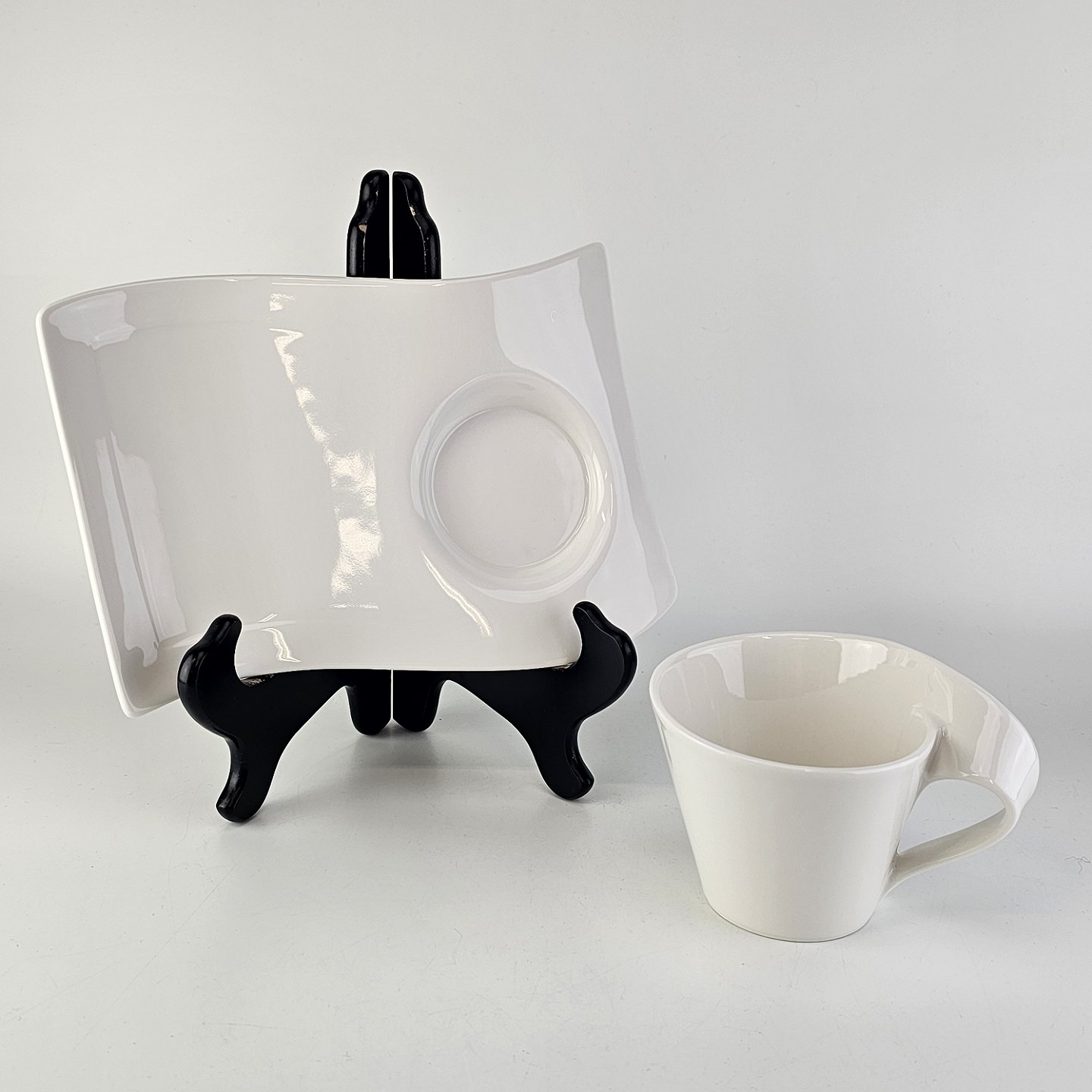 Stellet er i hvidt porcelæn med en buet form
