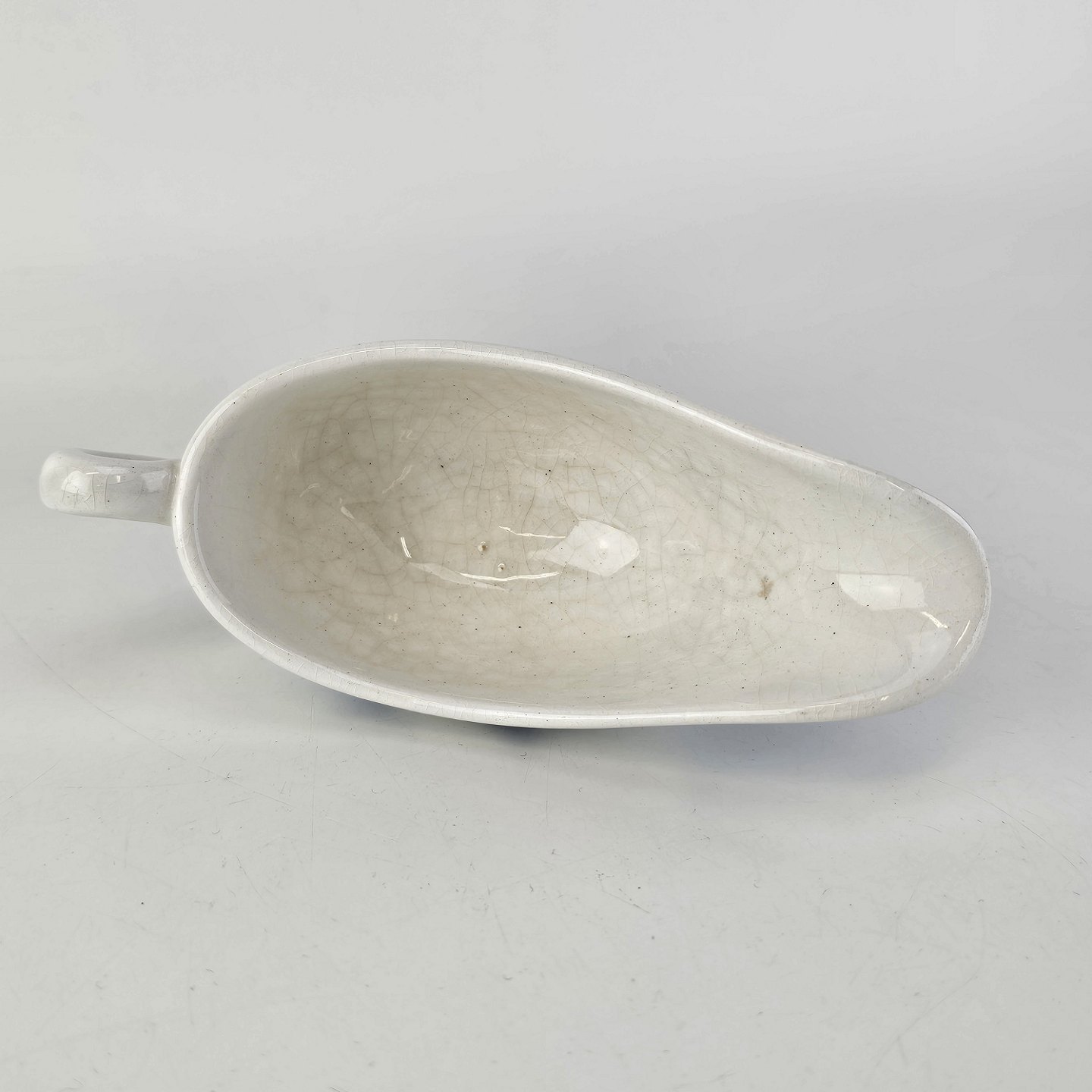 Fremstår med krakeleringer, nister, og et lille hul