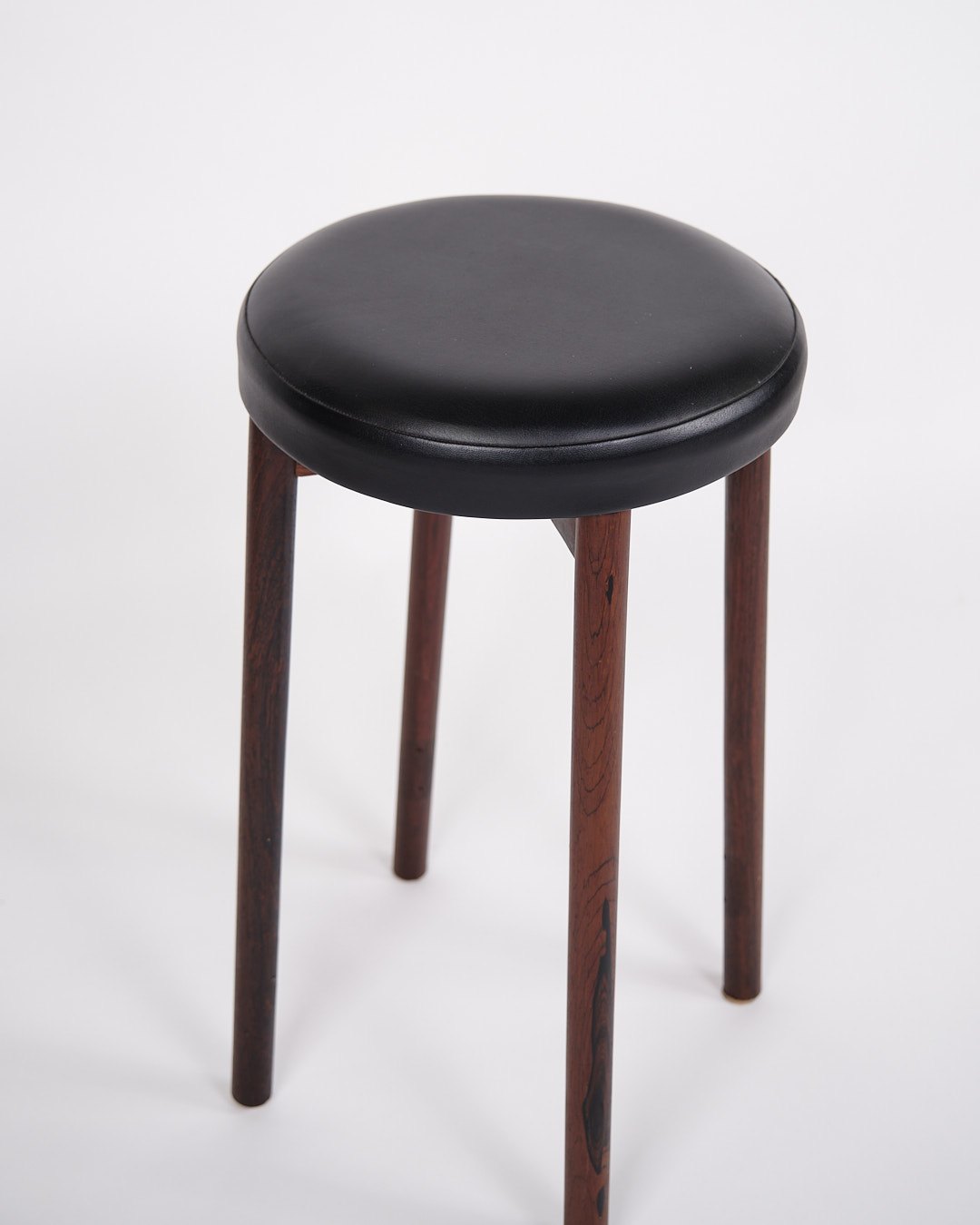 Dansk barstol fra 1970’erne. Palisander med sort lædersæde. Klassisk Dansk Design.