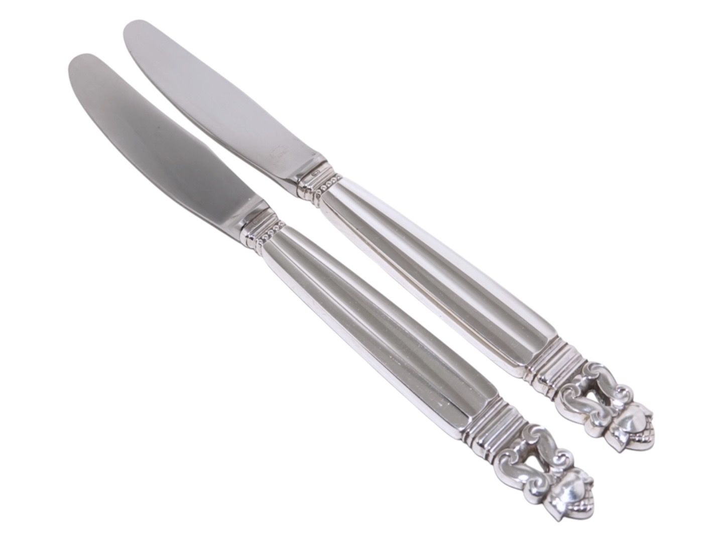 Georg Jensen Konge Sterlingsølv, frokostkniv med kort knivblad og grillskær.