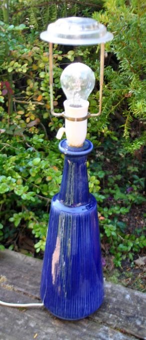 Keramisk bordlampe med blå glasur, 20. årh. Danmark.