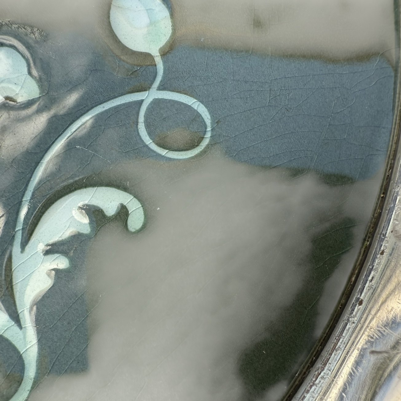 Villeroy & Boch, Flaskebakke / fad, diameter 17cm, Jugendstil / Art Nouveau i porcelæn og med sølvplet kant, lidt krakeleringer under glasuren (se foto) ellers pæn stand