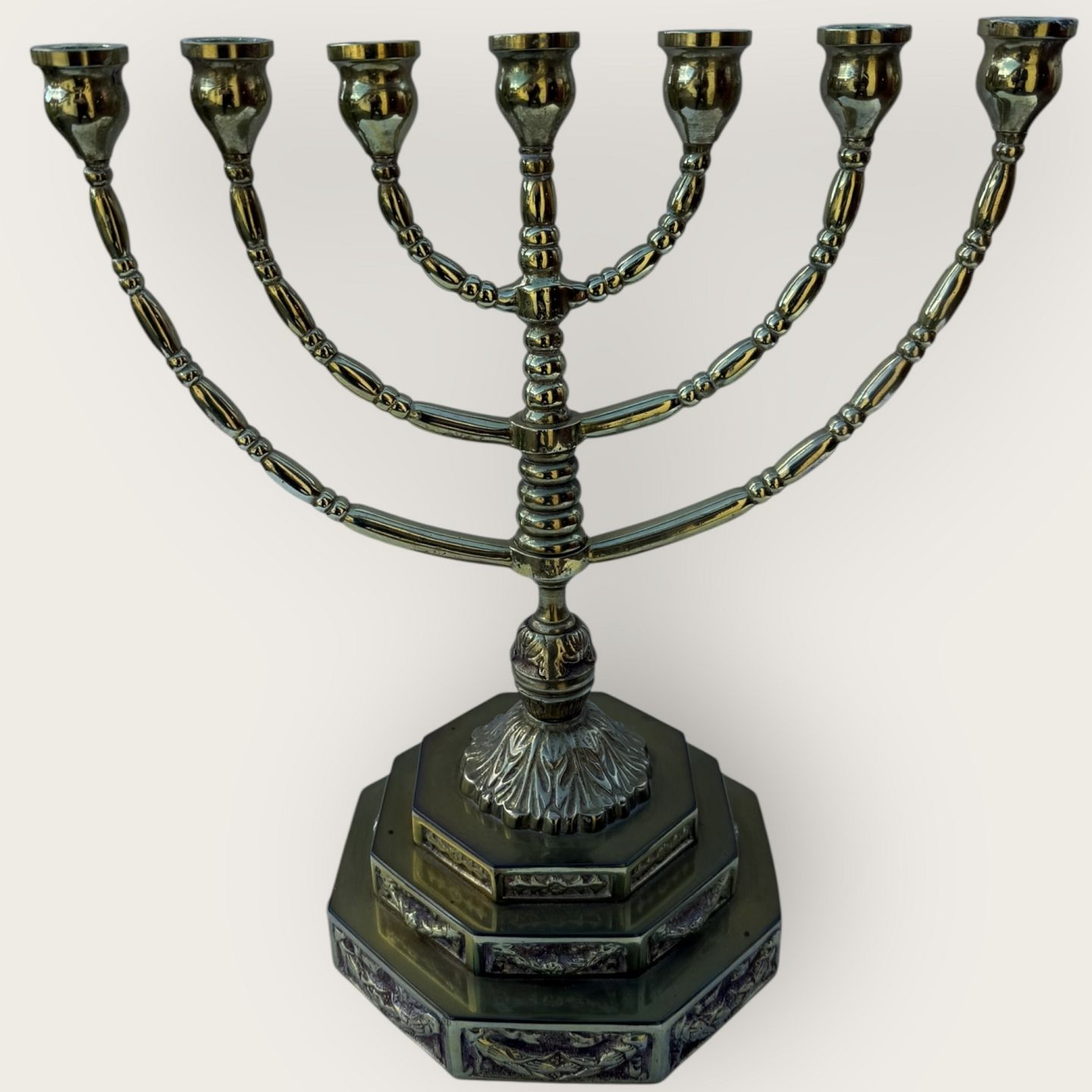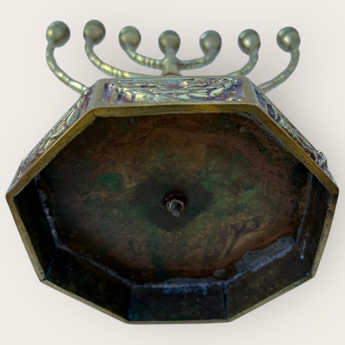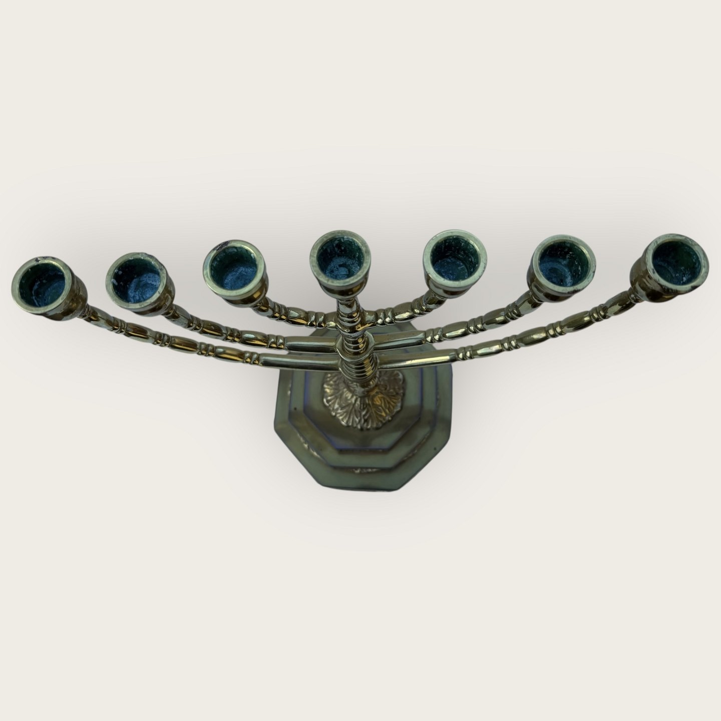 7 armet Messing lysestage, 33,5cm høj, 30,5cm bred *Pæn patineret stand*