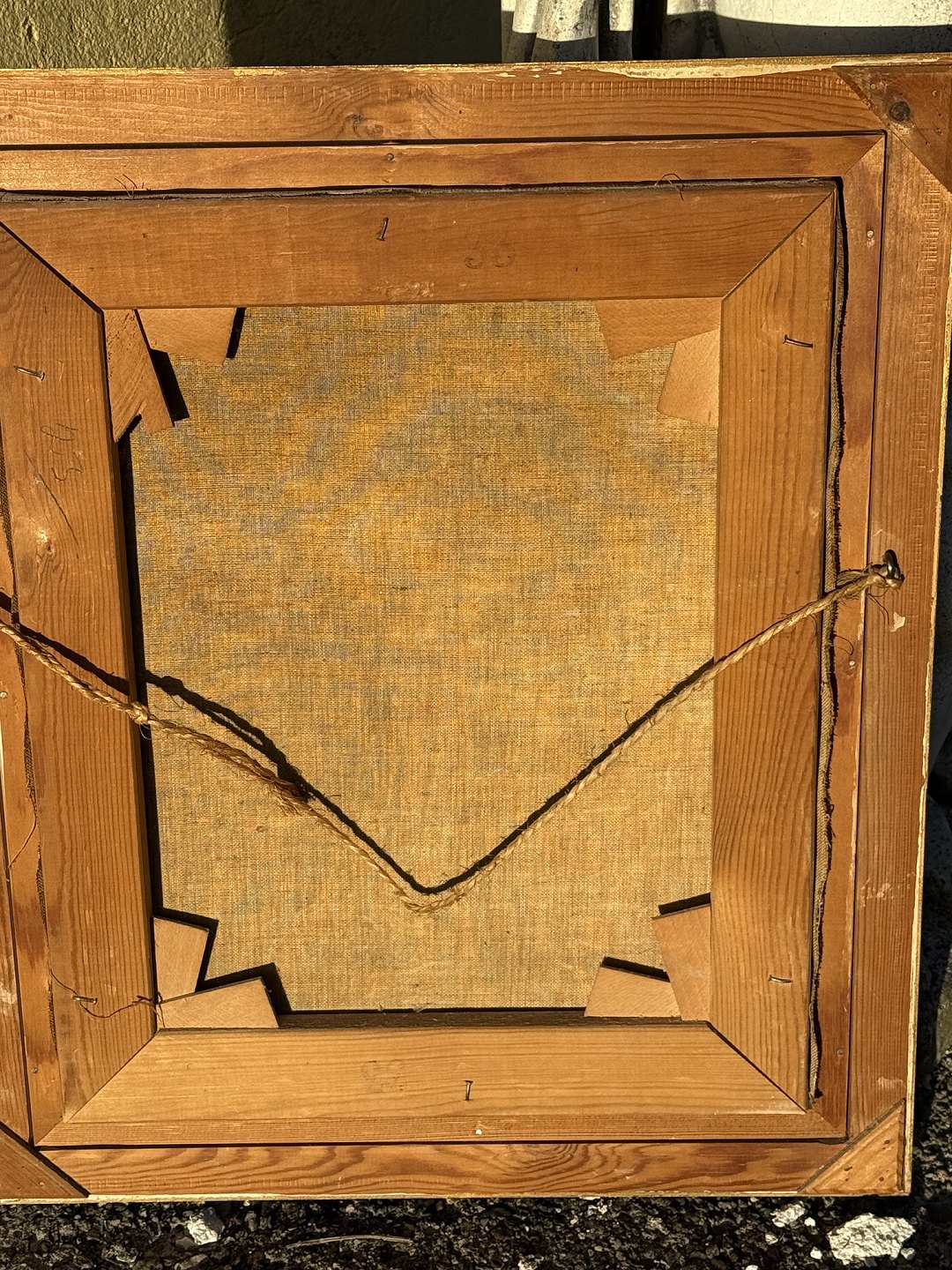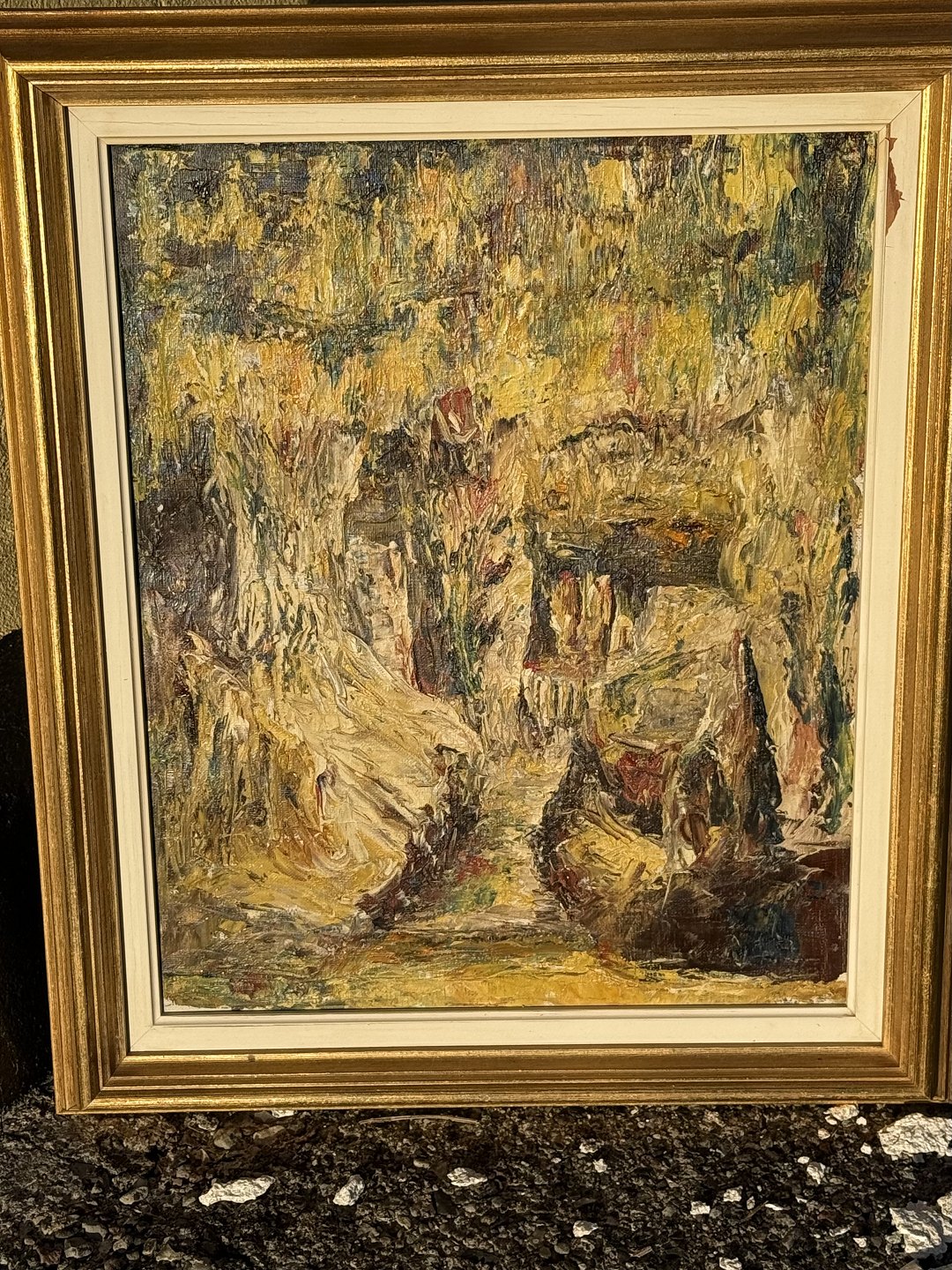 Usigneret moderne abstrakt maleri med god farveforståelse, Oliemaleri på lærred, Mål med ramme 51x43cm