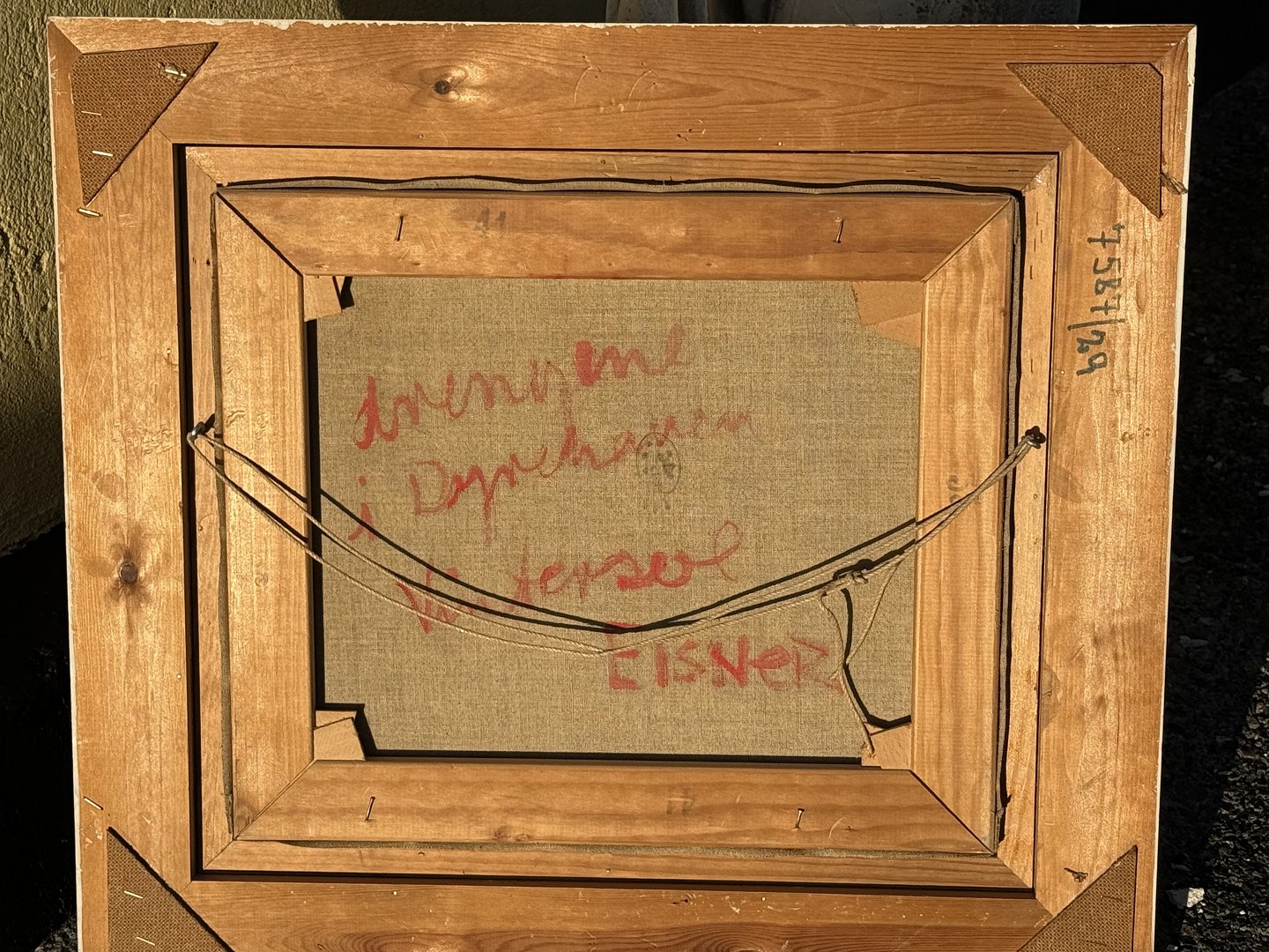 Ib Eisner, Drengene i Dyrehaven Vintersol, Olimaleri på lærred, 40x34cm uden ramme, 59x53cm med ramme *Fin stand*