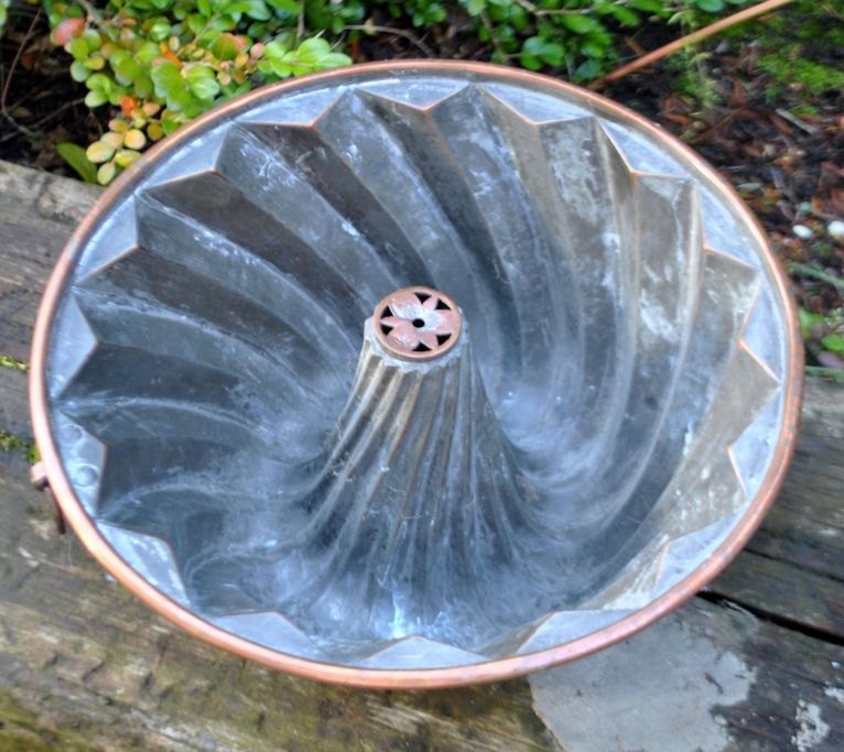 Kage/budding form i kobber, 19. årh. Danmark. Stemplet. H: 13 cm. Dia: 27,5 cm.