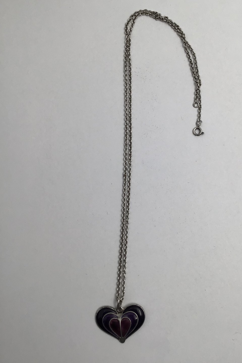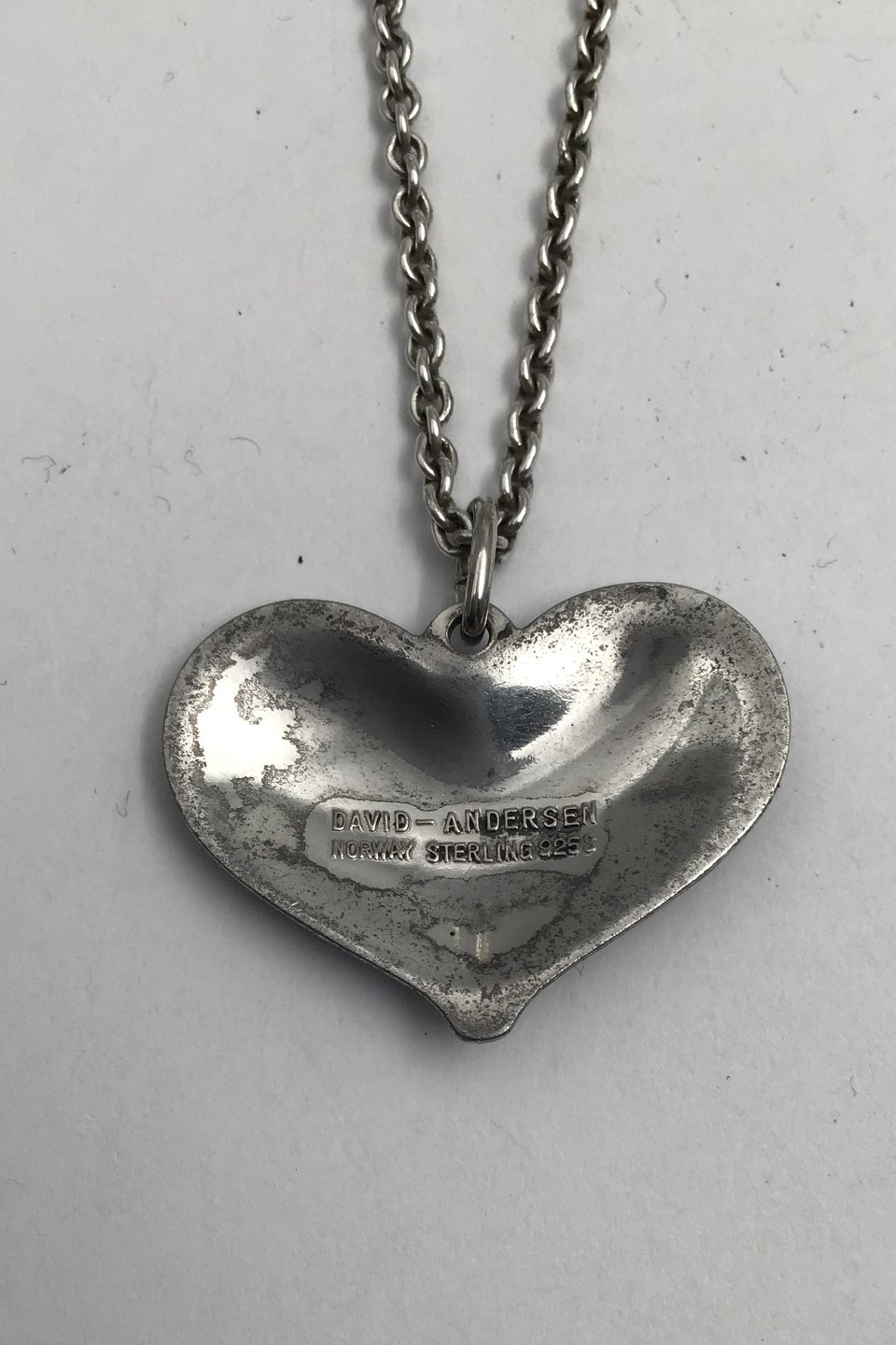 David Andersen Sterling Sølv / Emalje Hjerte Vedhæng + Kæde