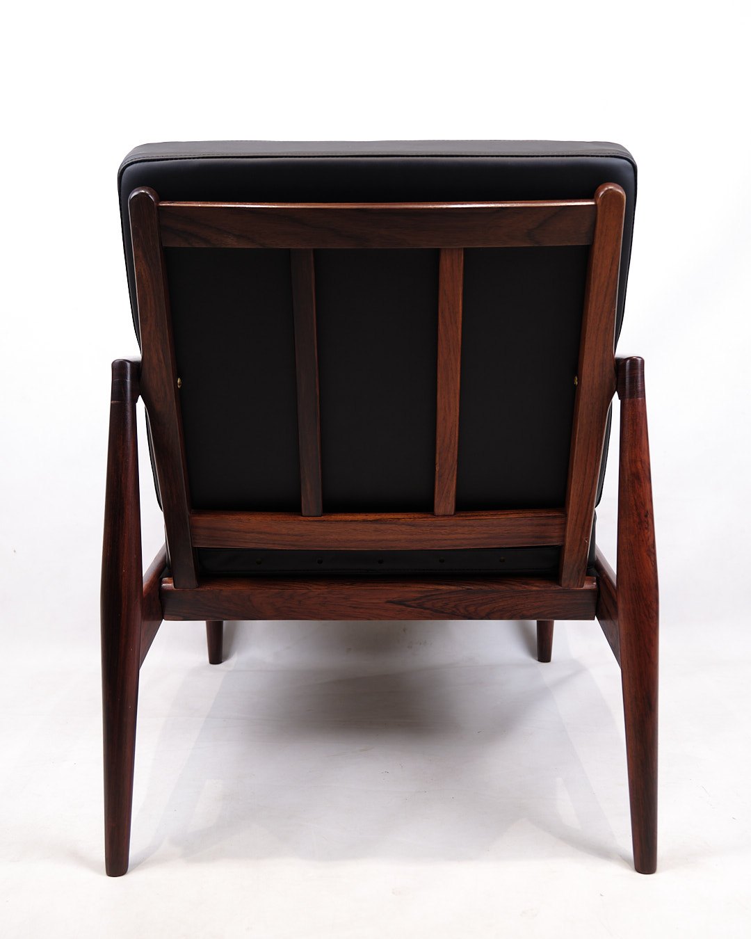 Kai Kristiansen “Papirknivstolen”, model 121. Palisander og sort læder. Produceret af Magnus Olesen, 1950’erne.