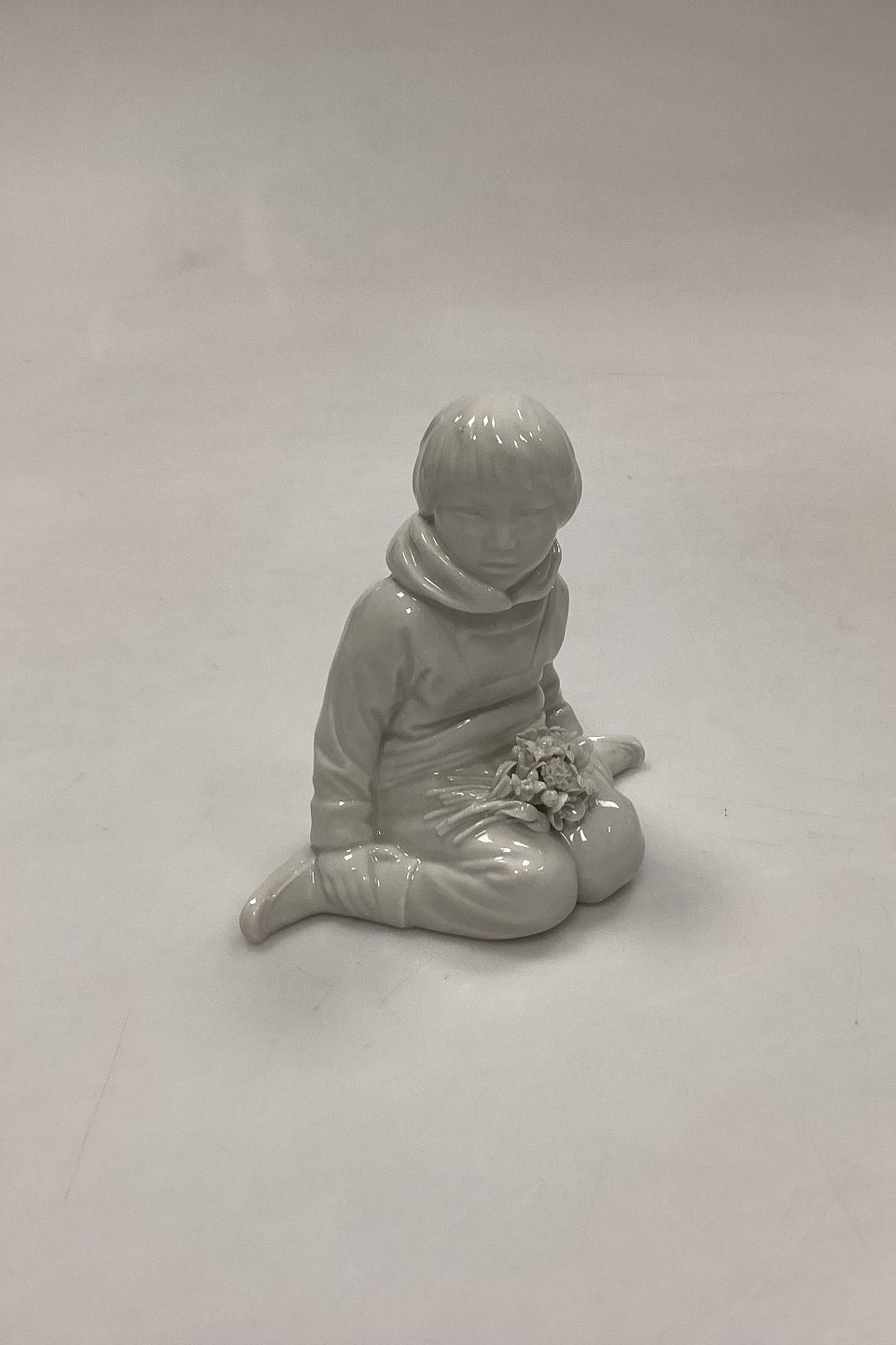Royal Copenhagen Blanc de Chine Figur - Dreng med blomster fra Grønland No. 12419