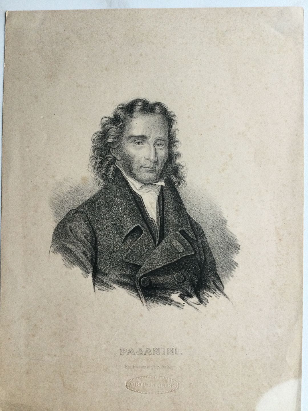 Litografi af Em. Bærentzen - Portræt af den italienske komponist og violinist Nicolo Paganini.