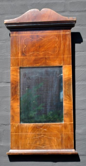 Dansk empire mahogni spejl ca. 1830. Med intarsia. 70 x 35 cm.