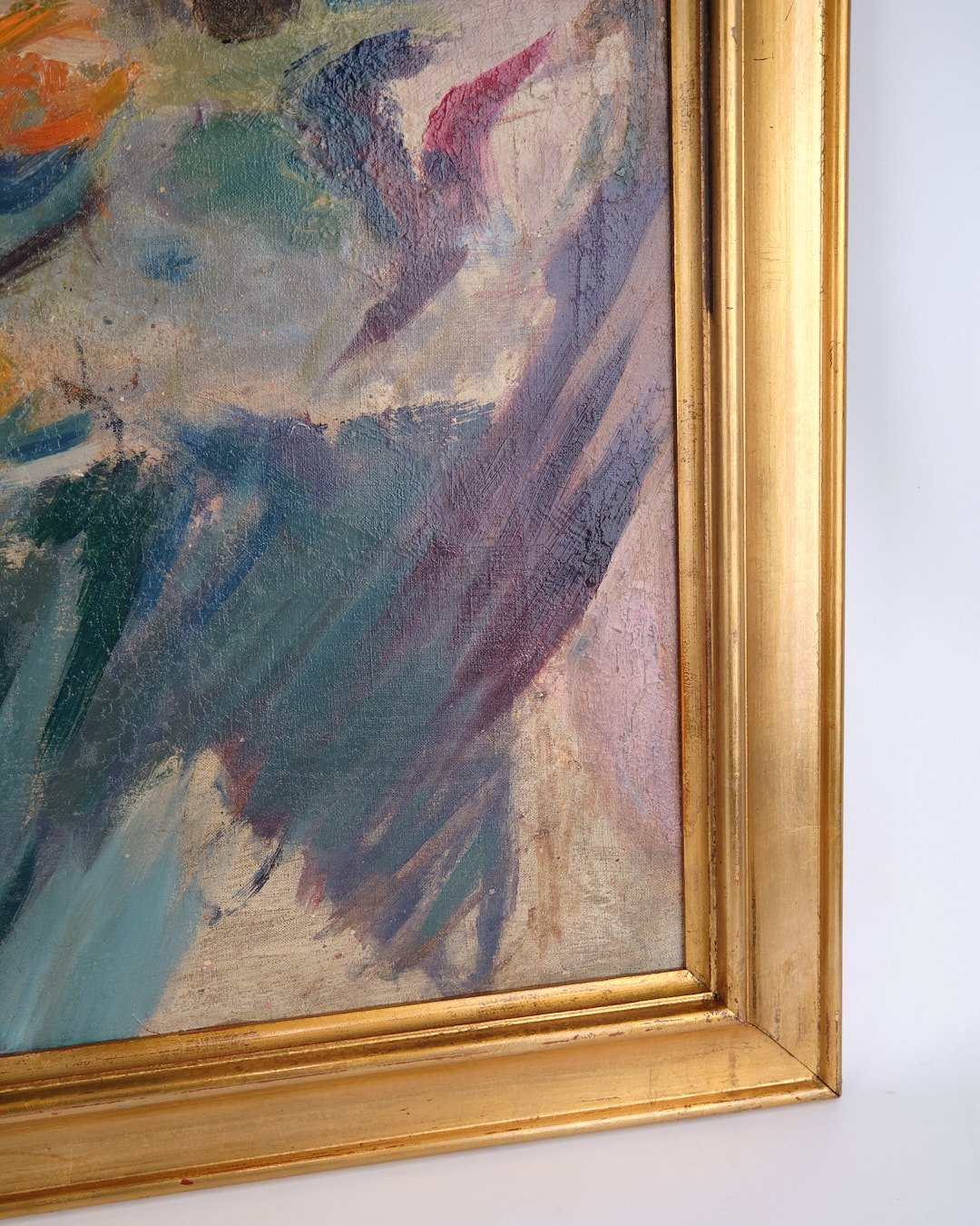 Abstrakt oliemaleri af kvinde fra 1930’erne. Olie på lærred med guldramme.